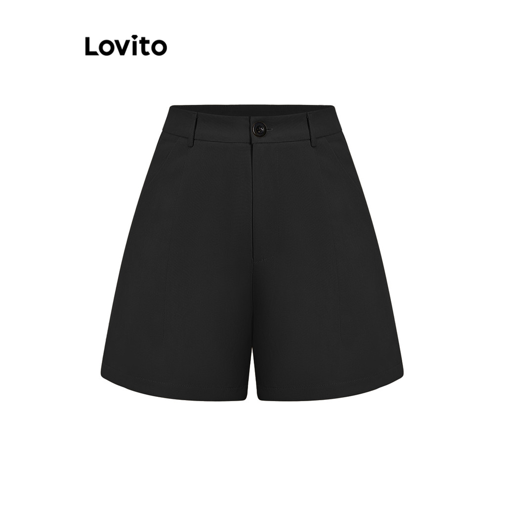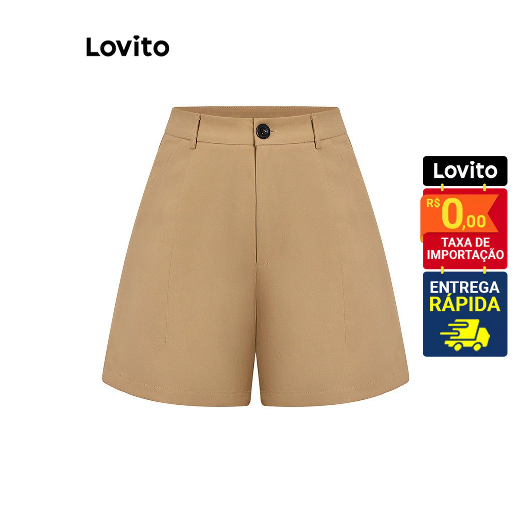 Lovito Shorts Feminino Liso Alfaiataria com Botão e Bolso L73AD150