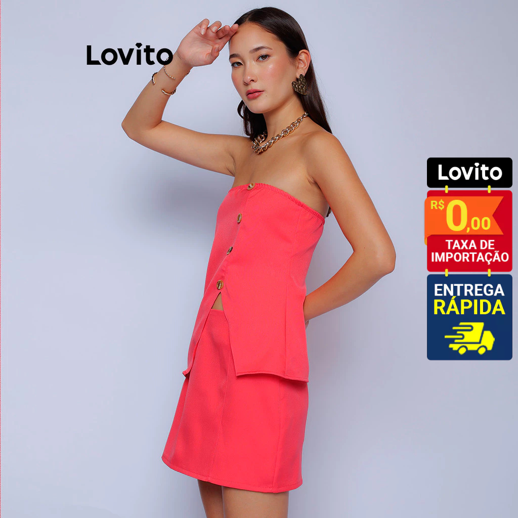 Lovito Saia Pink Curta Lisa Elegante Alfaiataria Feminina LB1073BRL1103