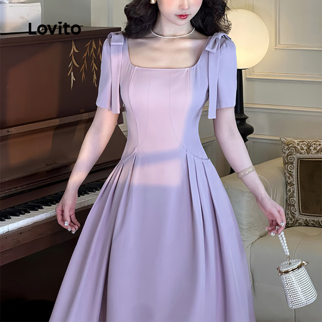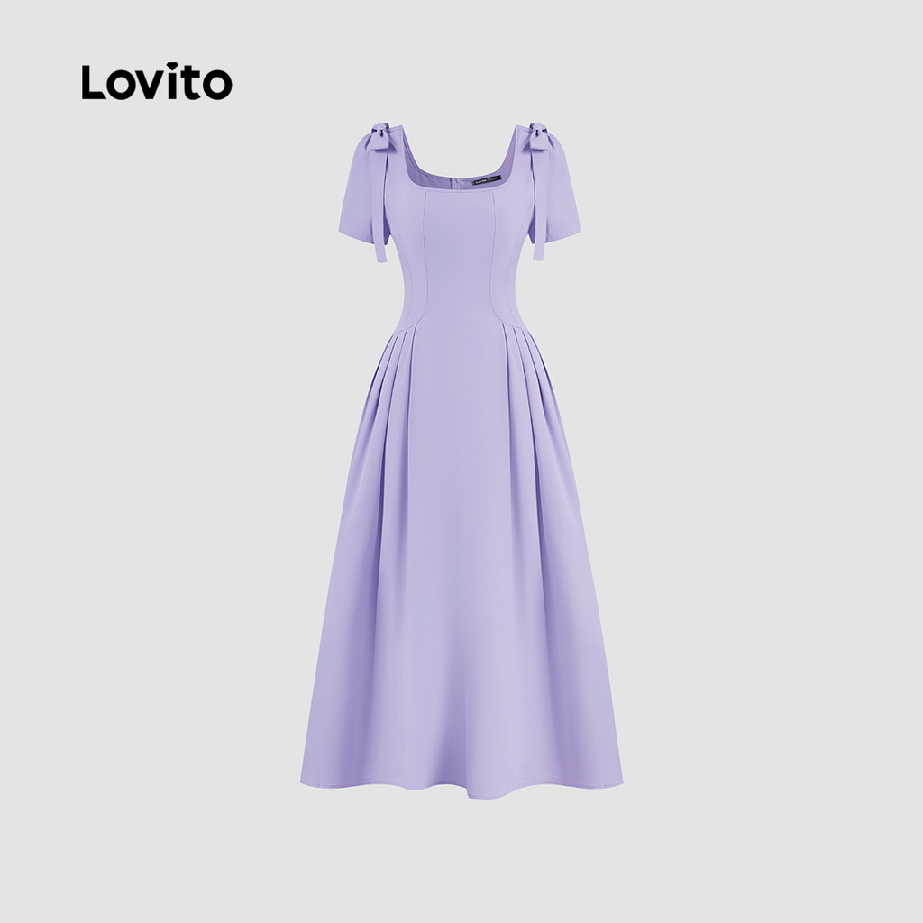Lovito Vestido Casual Roxo Com Laço E Drapeado Para Primavera/verão L149ED201