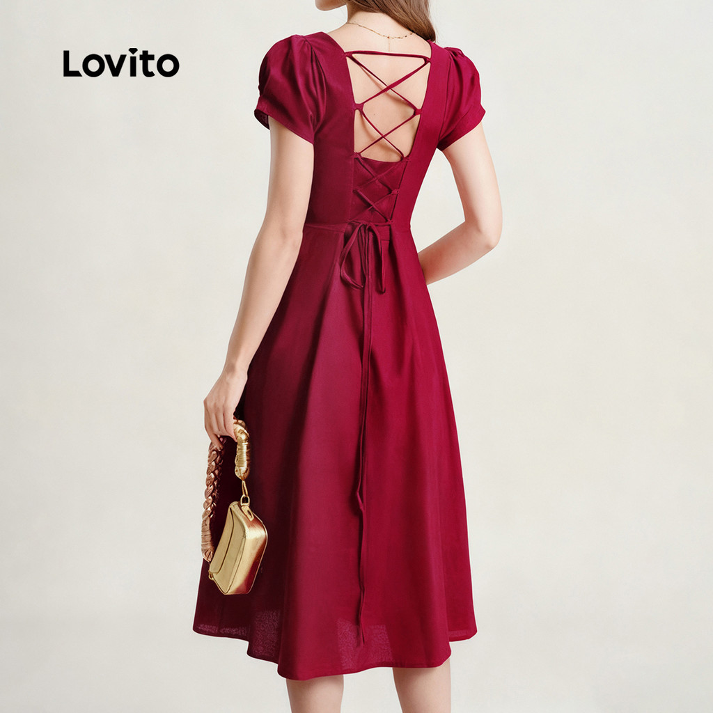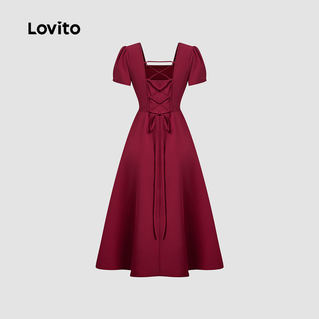 Lovito Vestido Elegante com Laço Nas Costas para Primavera/verão Vestido Claret para Mulheres L155ED869