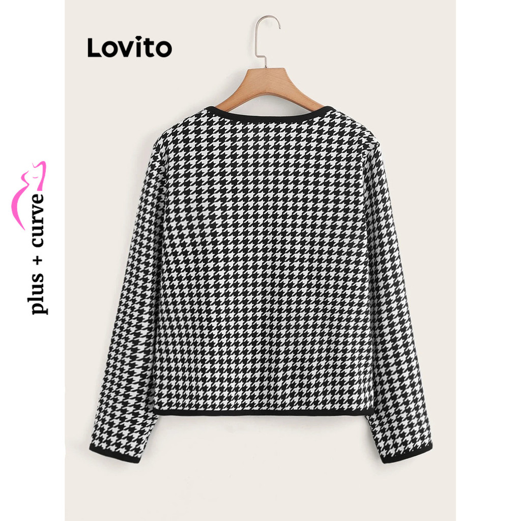Lovito Jaqueta Curva Plus Size Casual Houndstooth Chanel Estilo Jaqueta Para Mulheres LBL10084