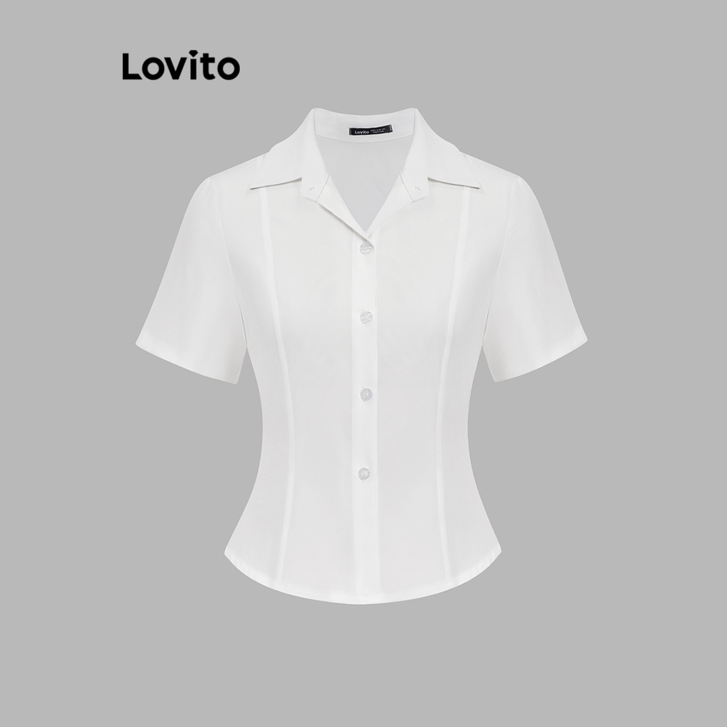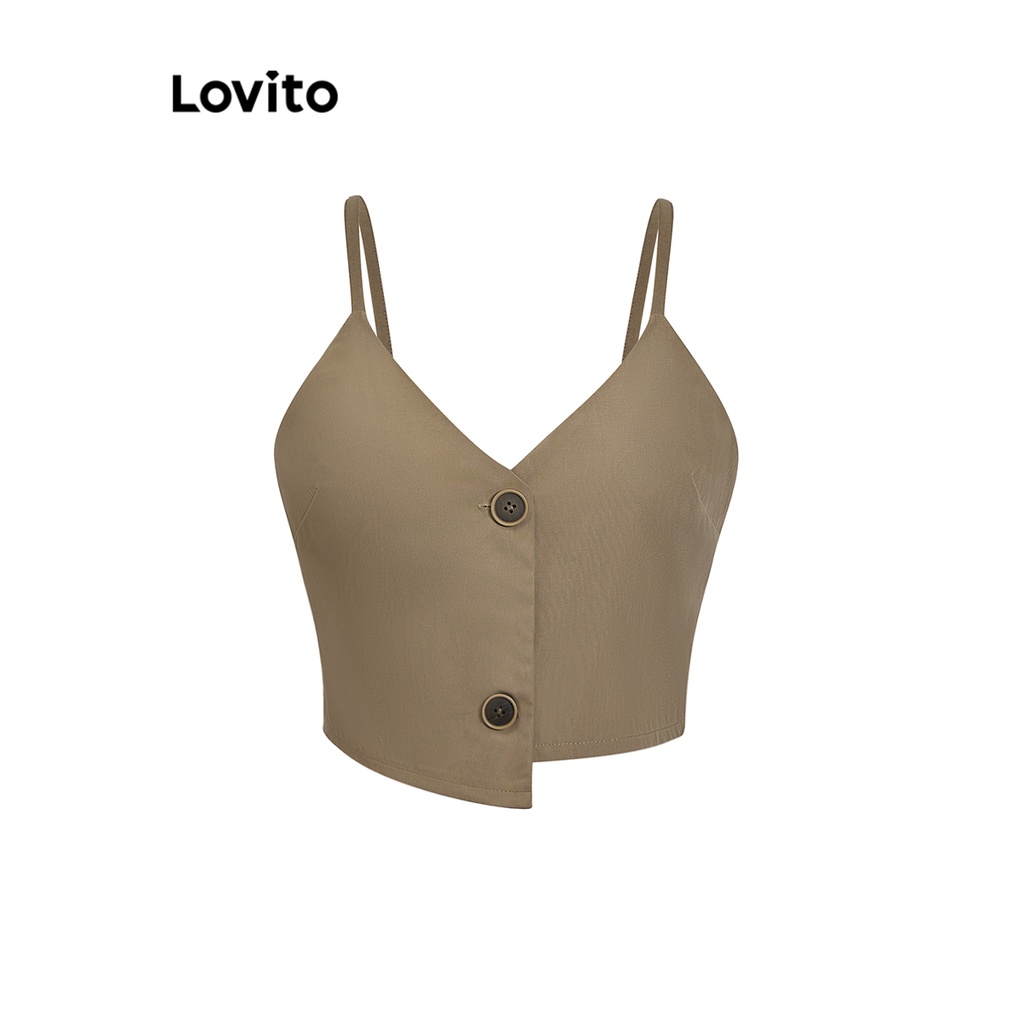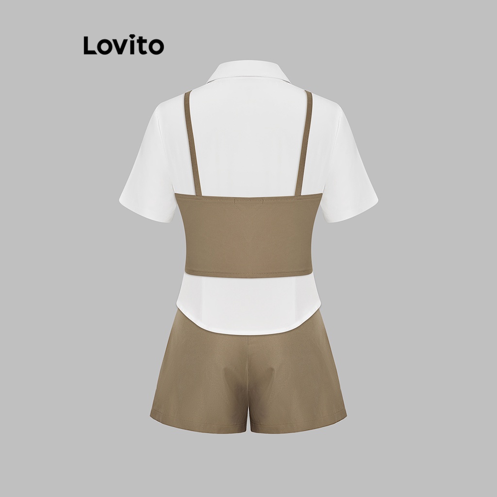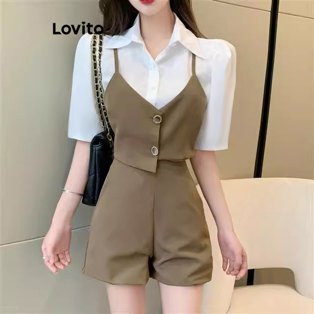 Lovito Conjuntos De Shorts Elegantes Com Botões Assimétricos Lisos Na Parte Superior Ou Inferior Para Mulheres L74ED216