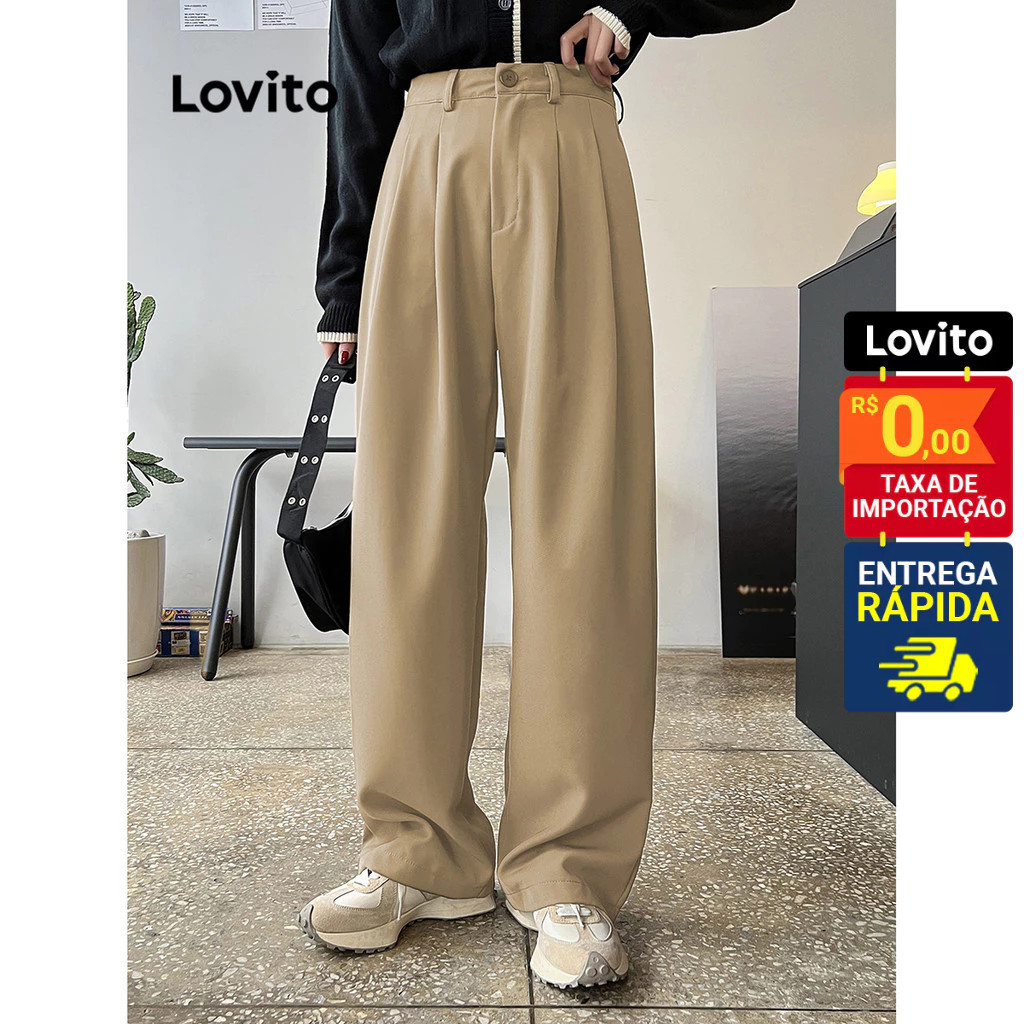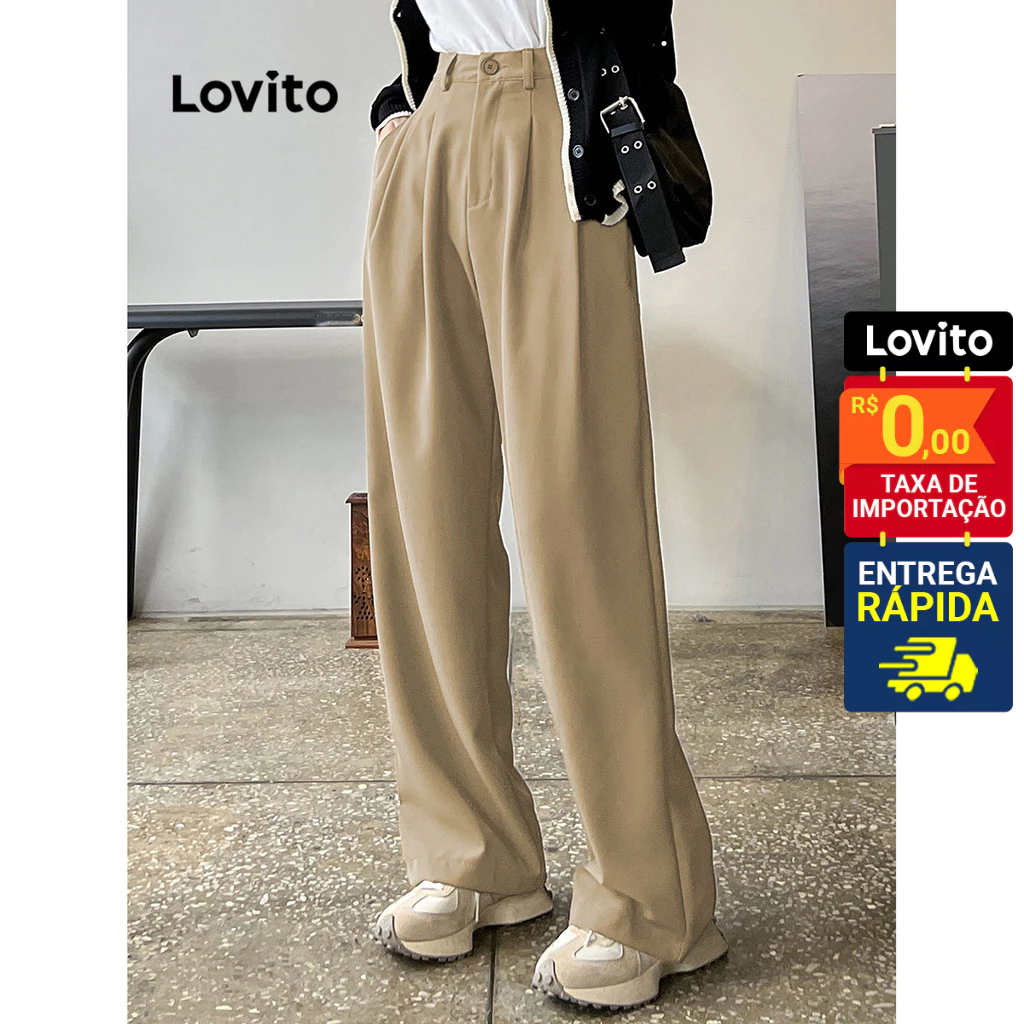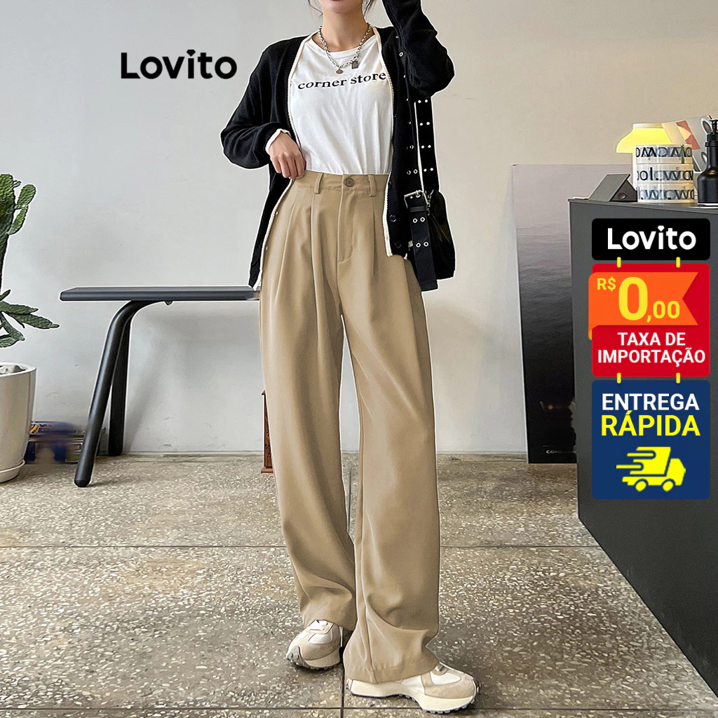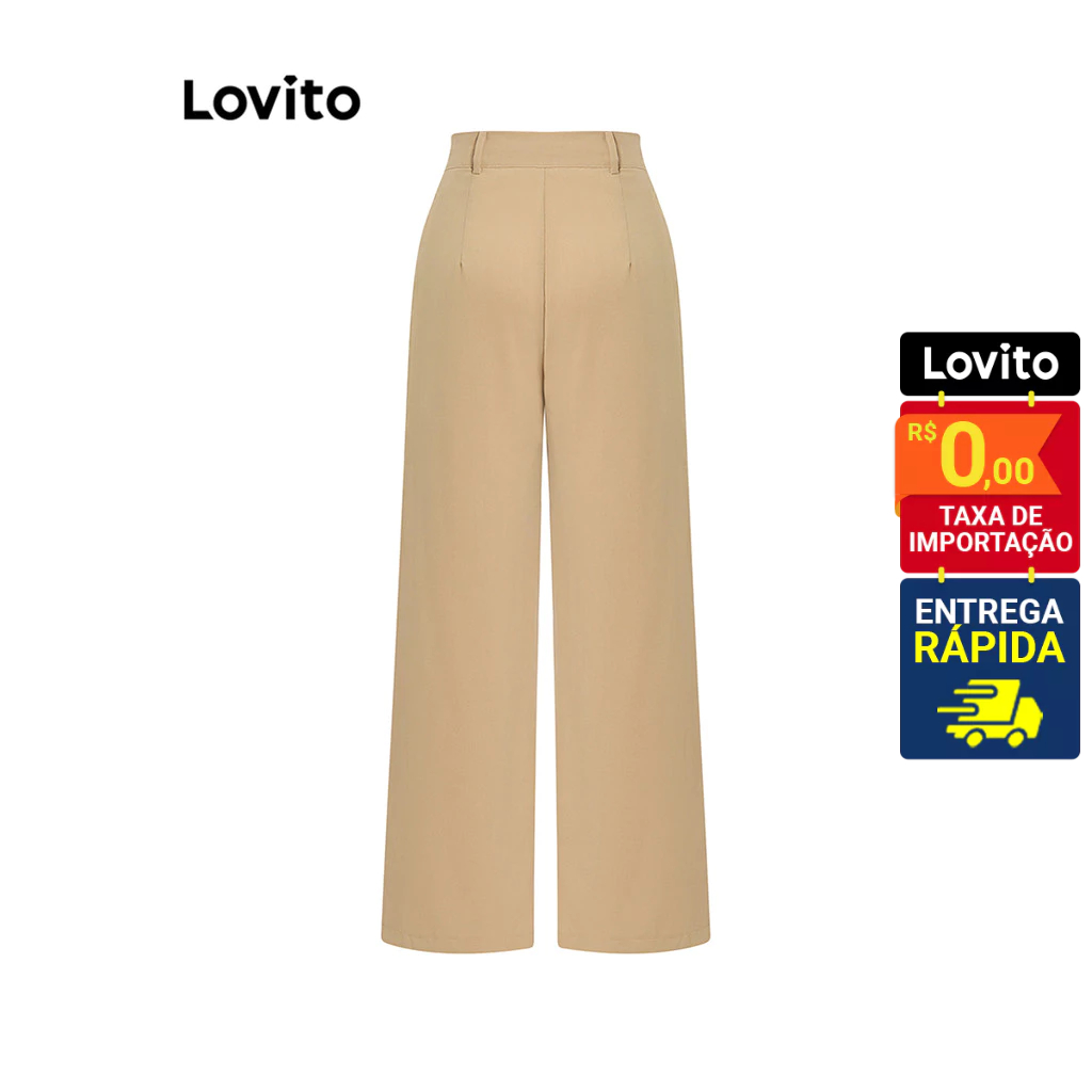Lovito Calça Feminina Reta Alfaiataria Cintura Média L64AD096