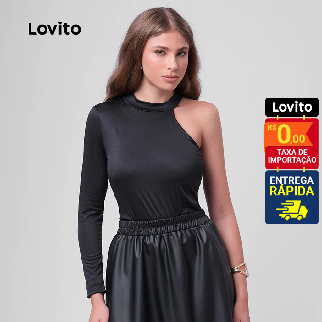 Lovito Blusa Feminina Assimétrica Uma Manga LB396BRL425