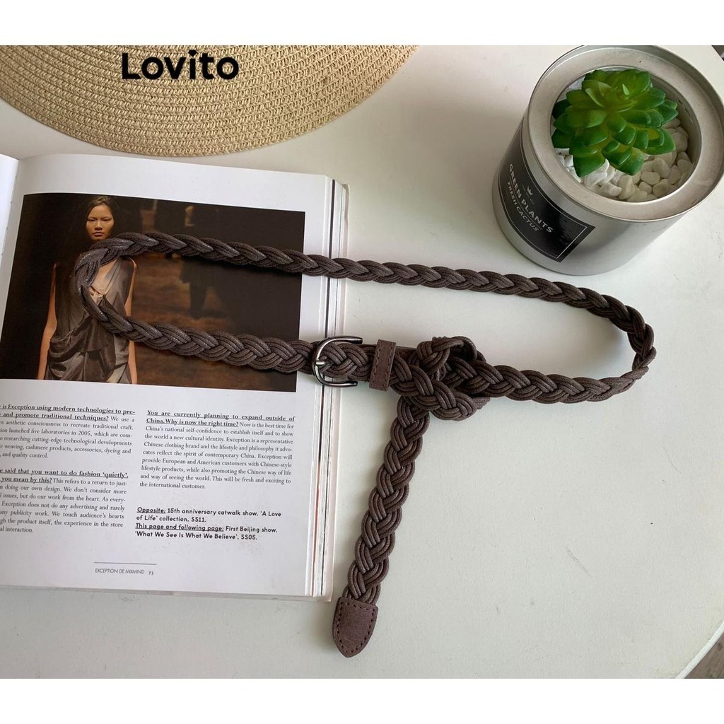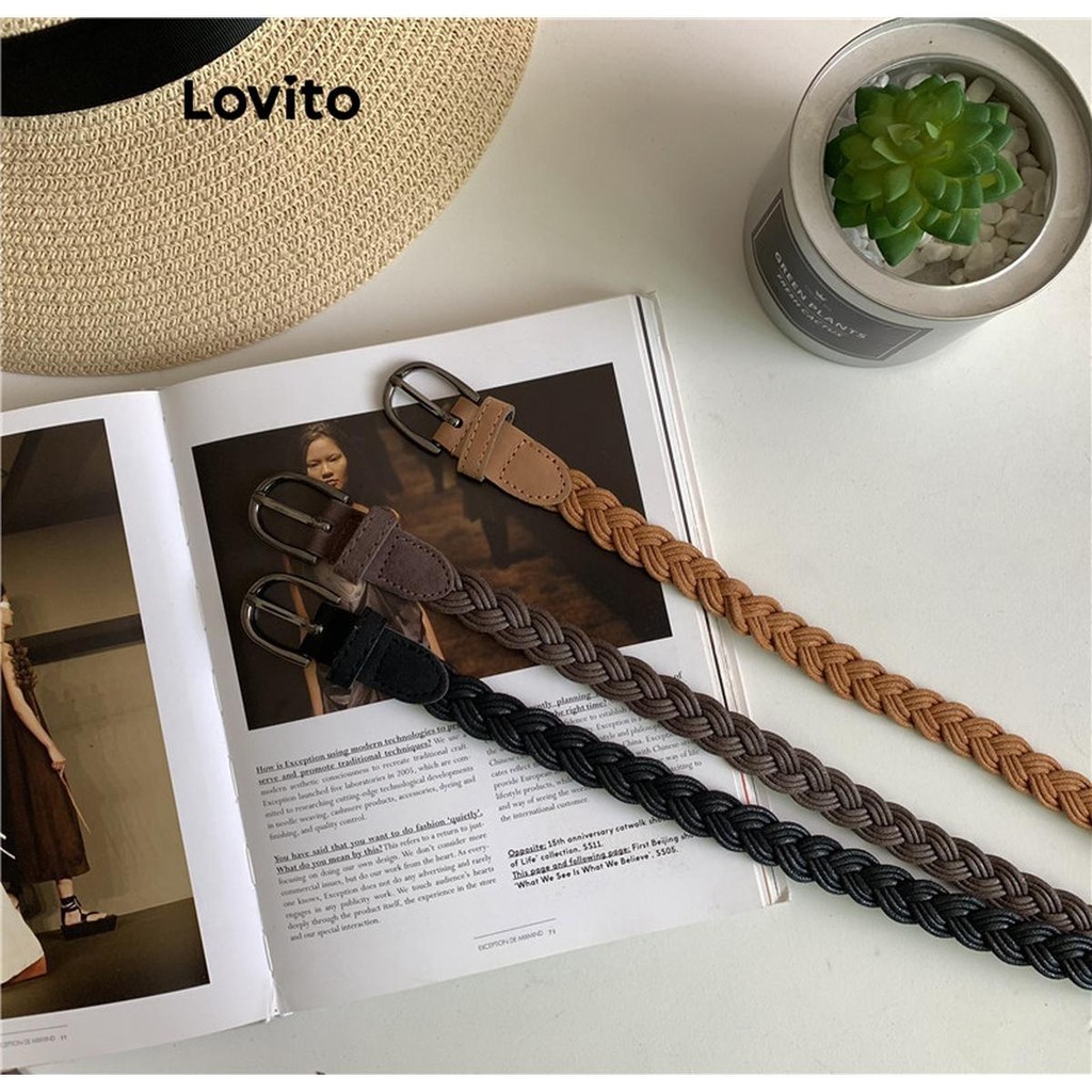 Lovito Cinto trançado liso casual para mulheres LFA33213