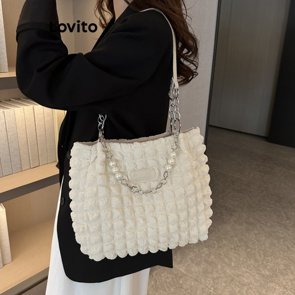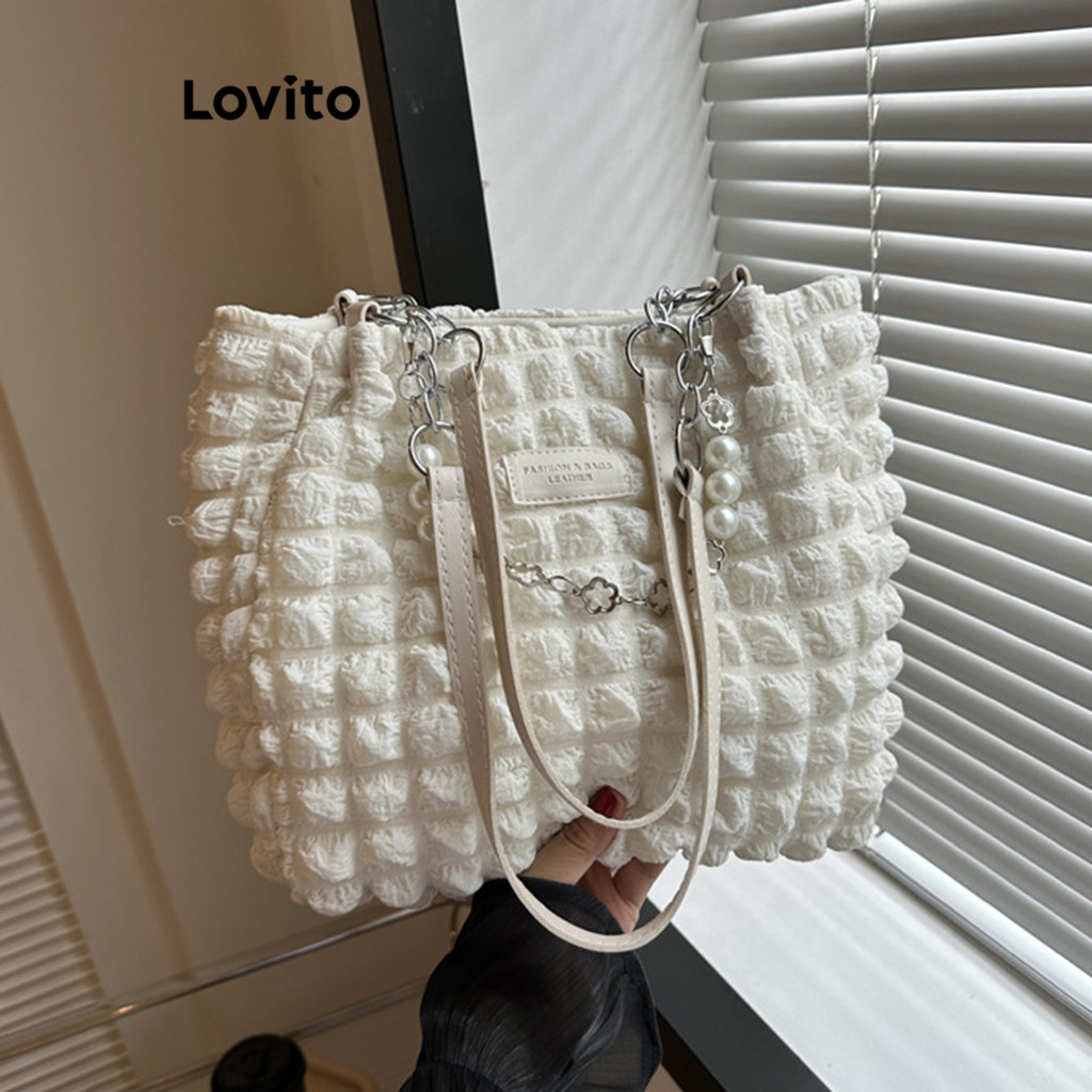 Lovito Bolsa De Ombro Casual Bolsa De Ombro Básica Lisa Para Mulheres LFA04001 (Branco/Preto)