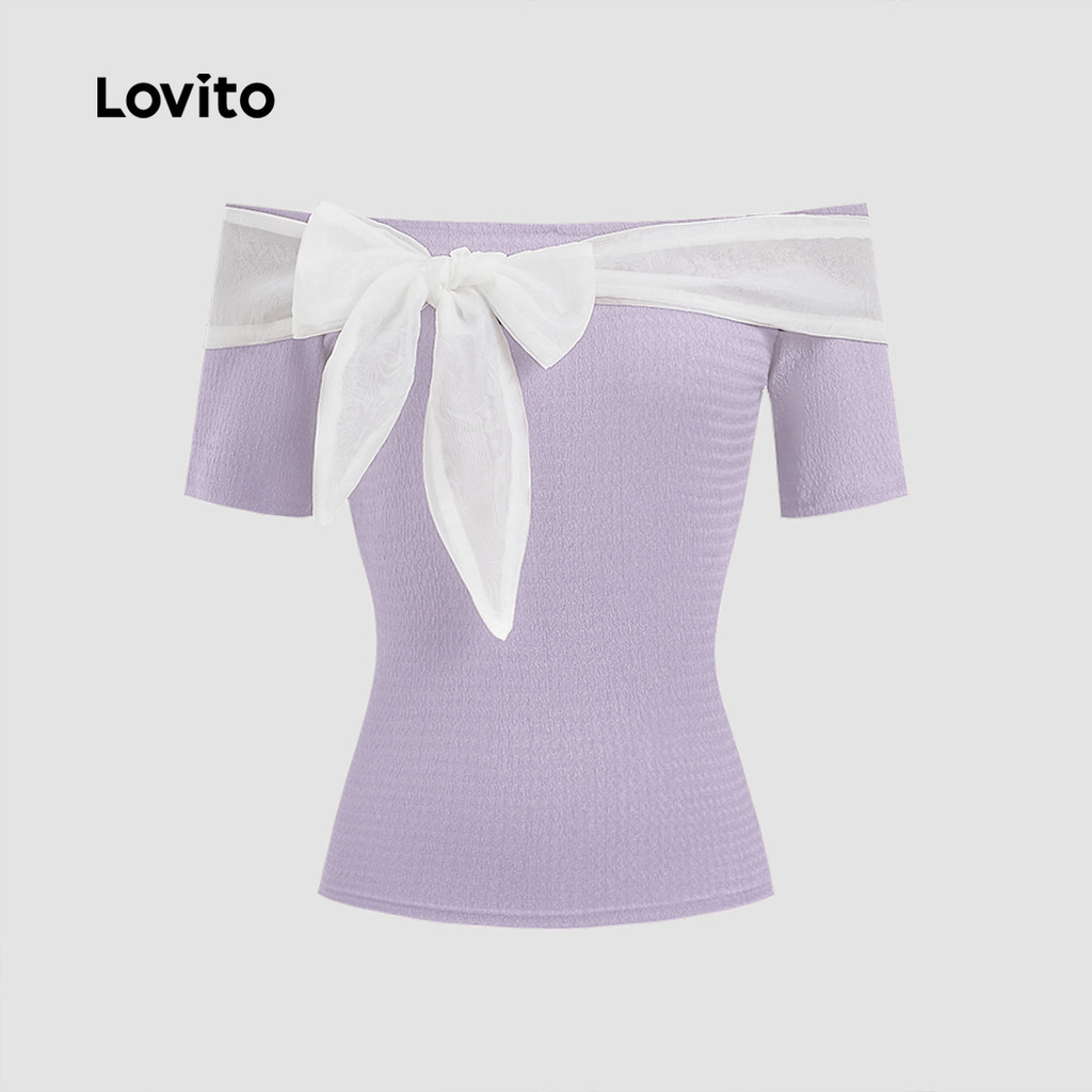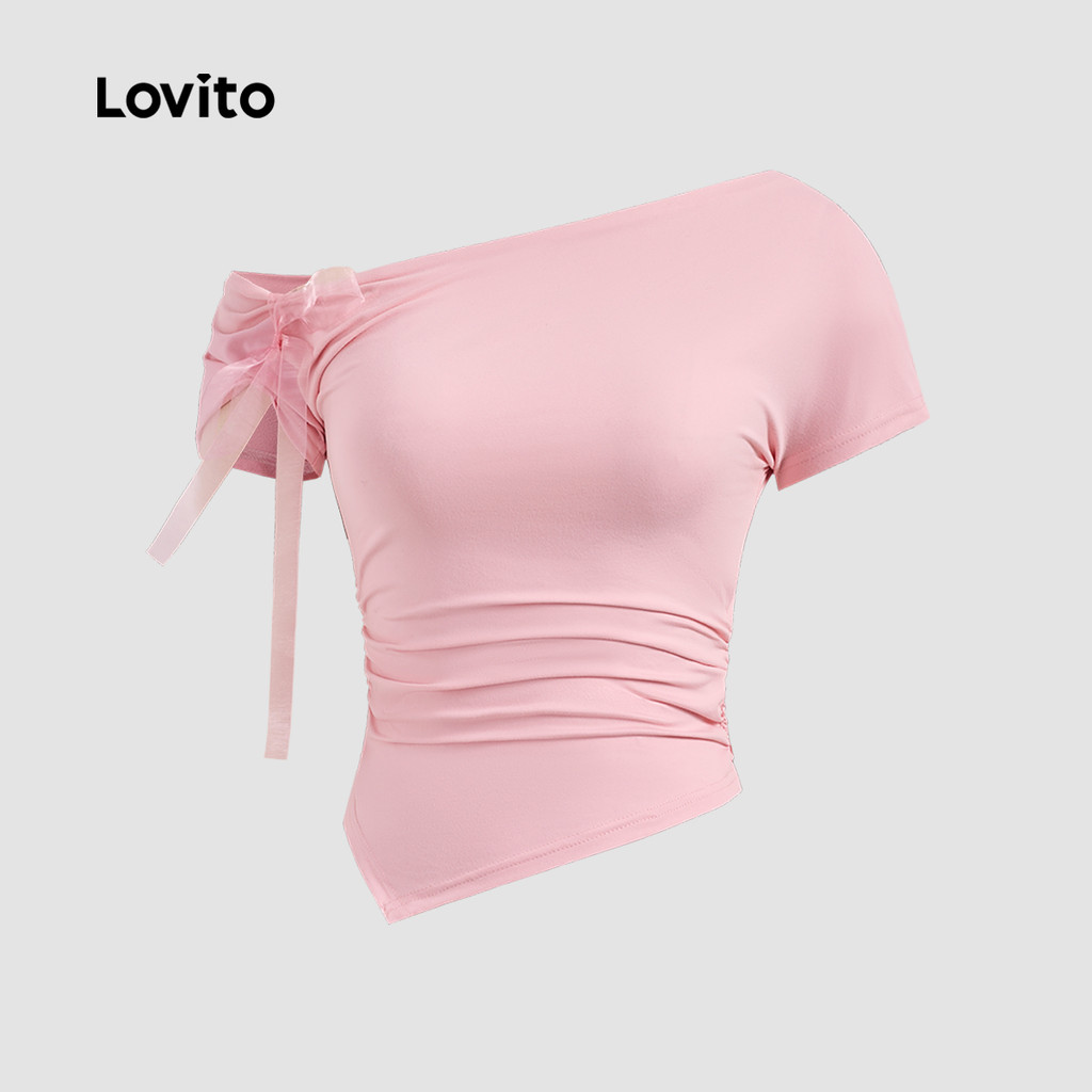 Lovito Camiseta Fofa Lisa Assimétrica Com Gravata Frontal Para Mulheres L122AD121