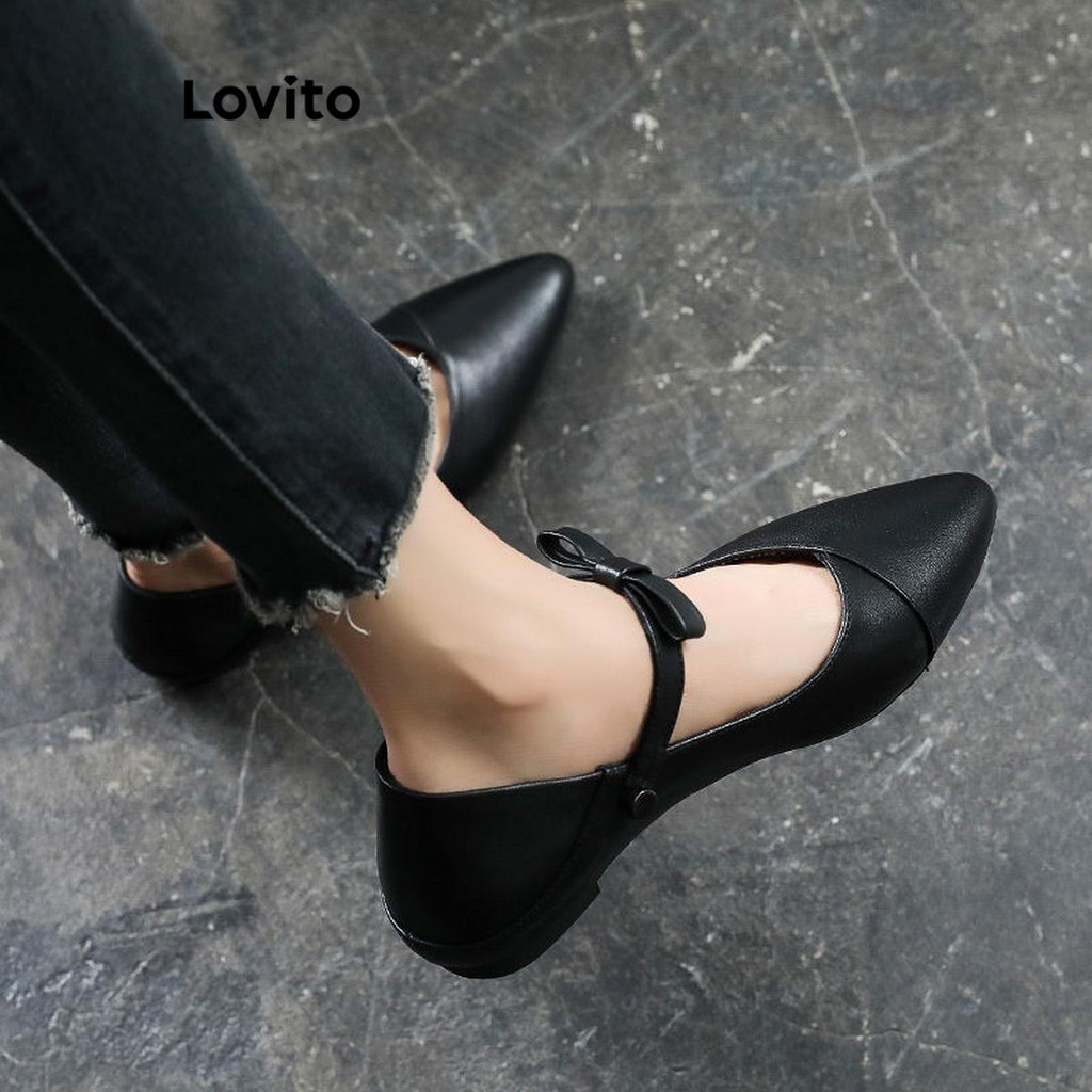 Sapato de balé plano feminino Lovito, macio, antiderrapante, duas formas de usar, laço liso, casual e versátil LFA59296