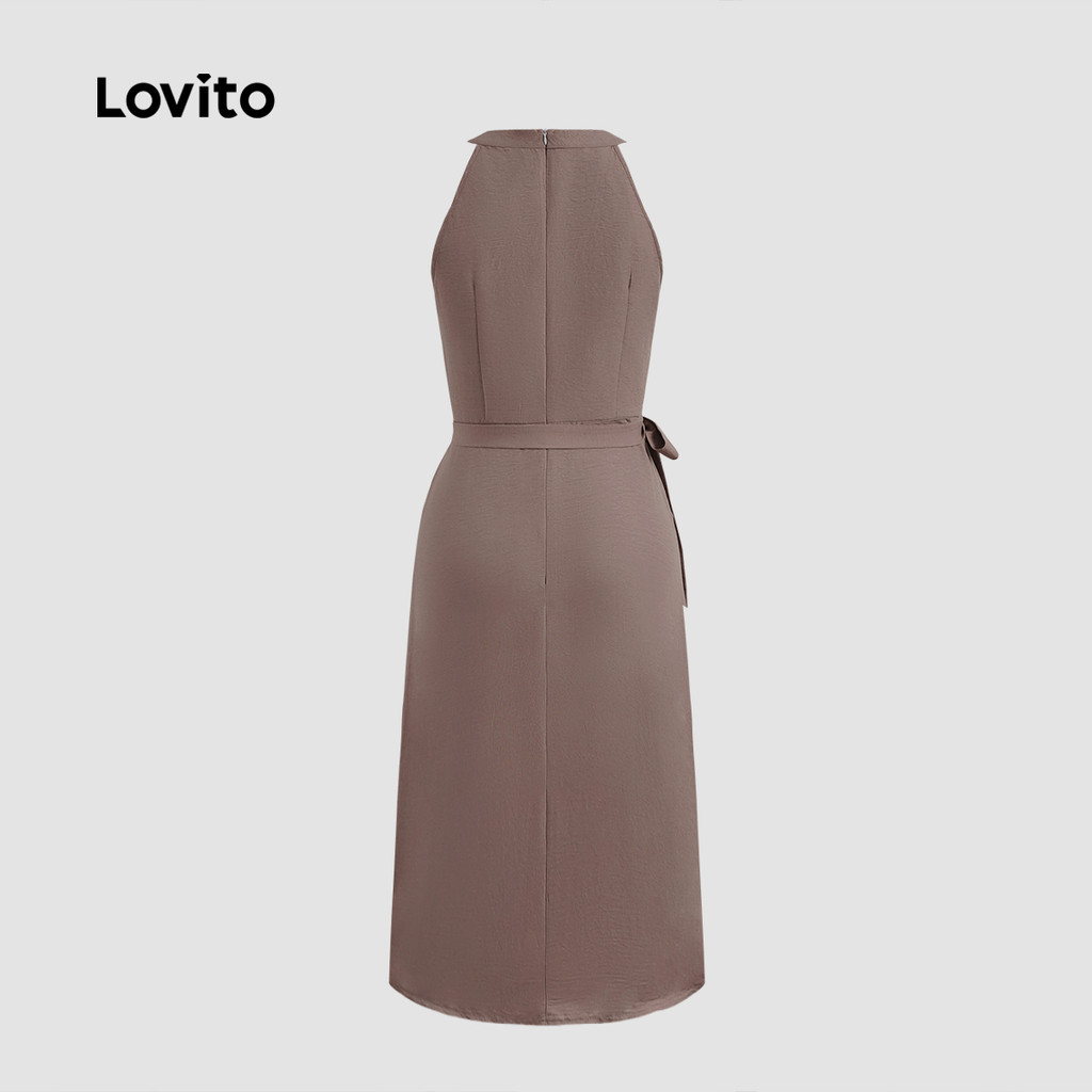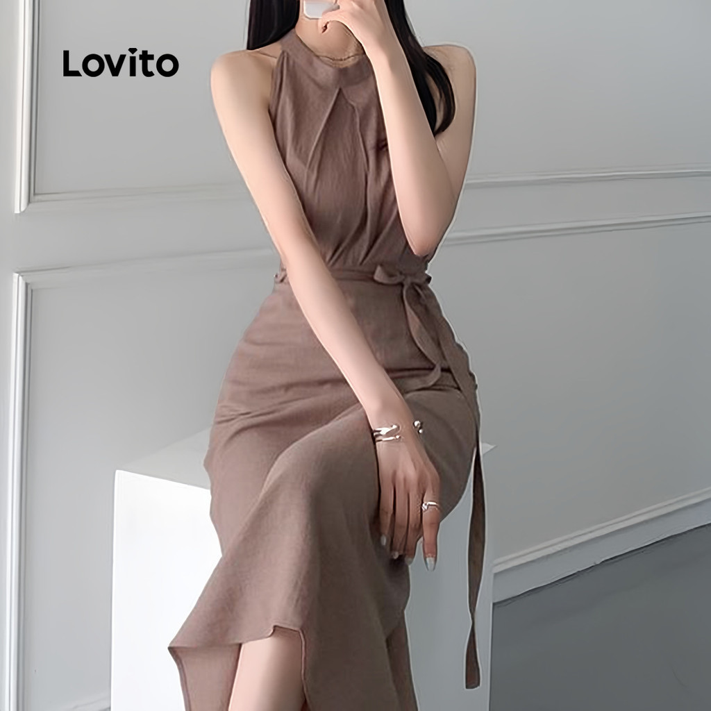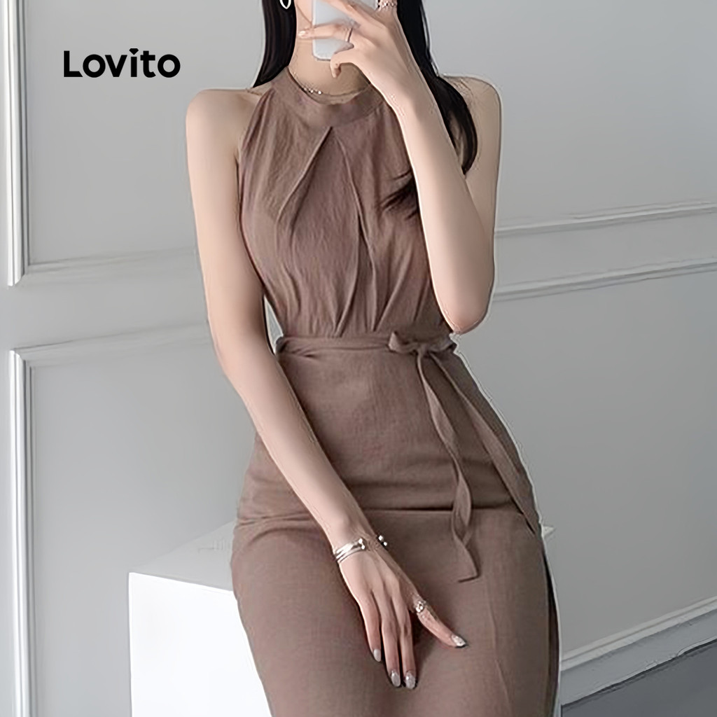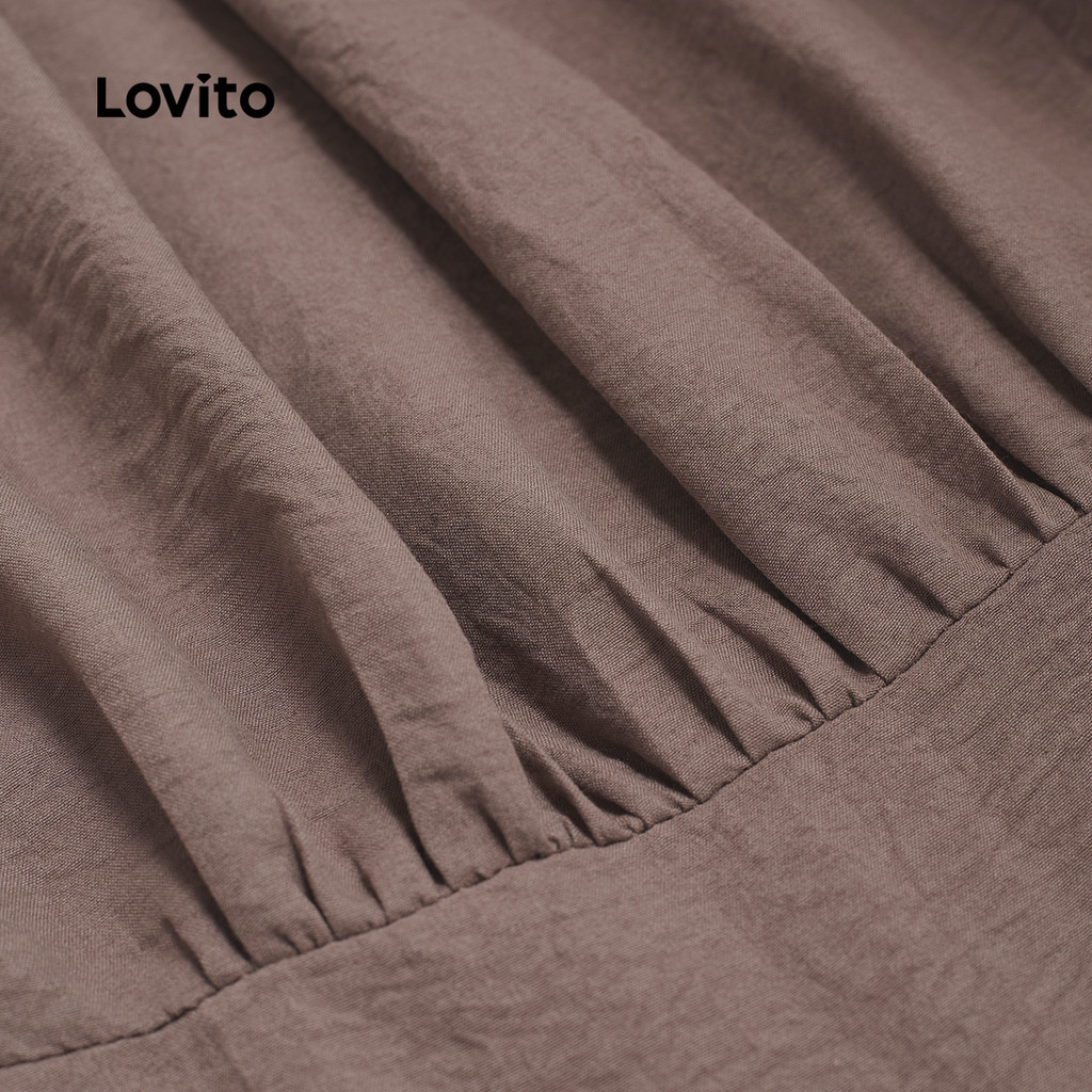 Lovito Vestido Casual liso plissado com cinto para mulheres L128ED385