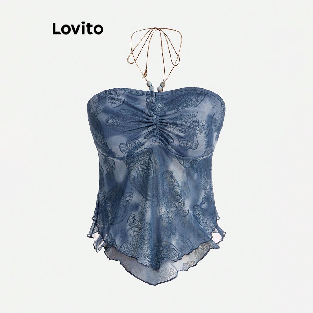 Lovito Regata Boho Paisley Padrão Regata Feminina De Camada Dupla Com Contas L83ED011