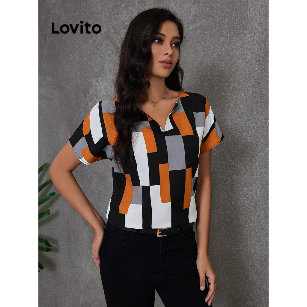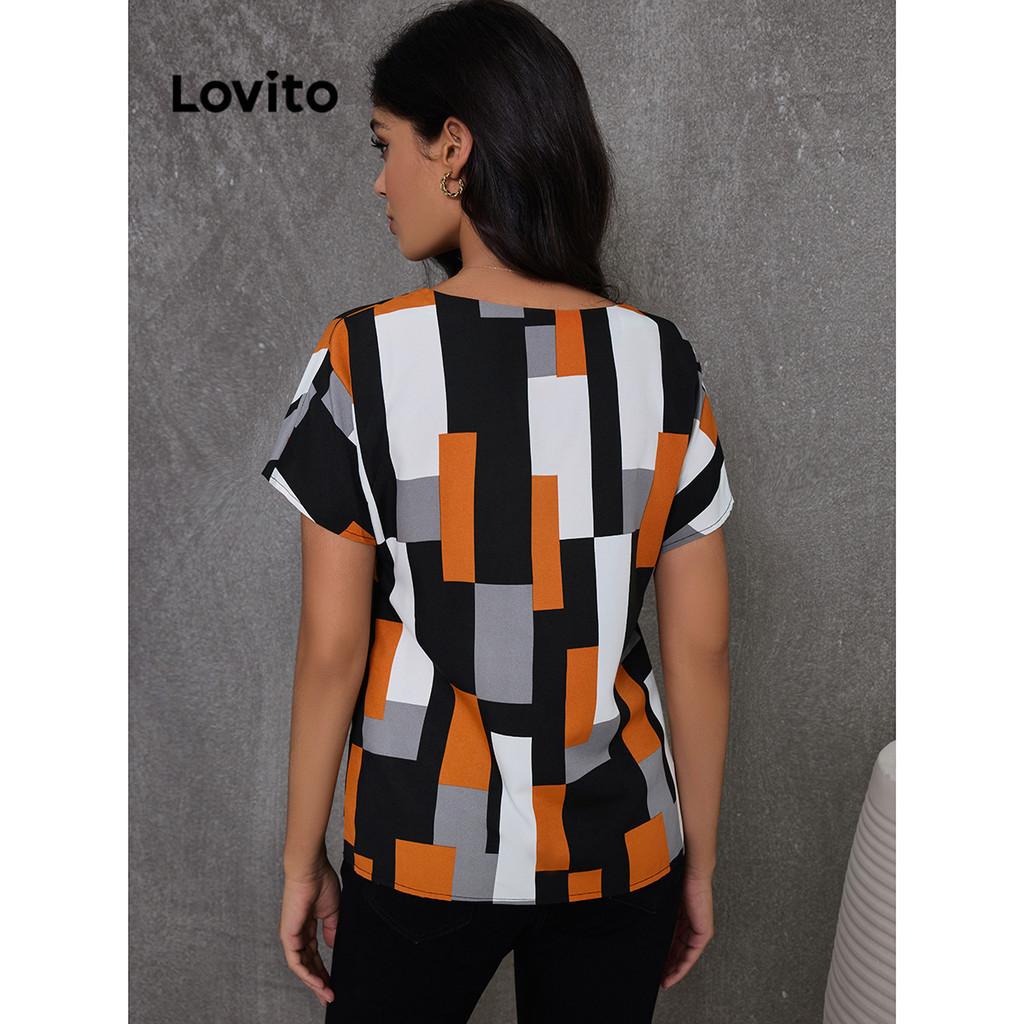 Lovito Blusa básica elegante com padrão geométrico para mulheres LBL16347