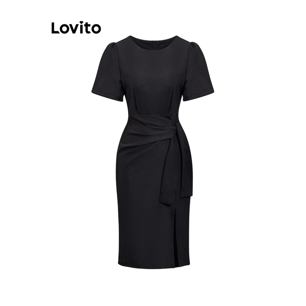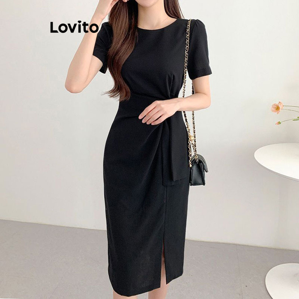 Lovito Vestido Casual Liso Com Nó Frontal Dividido Para Mulheres L80ED307 (Multicolorido)