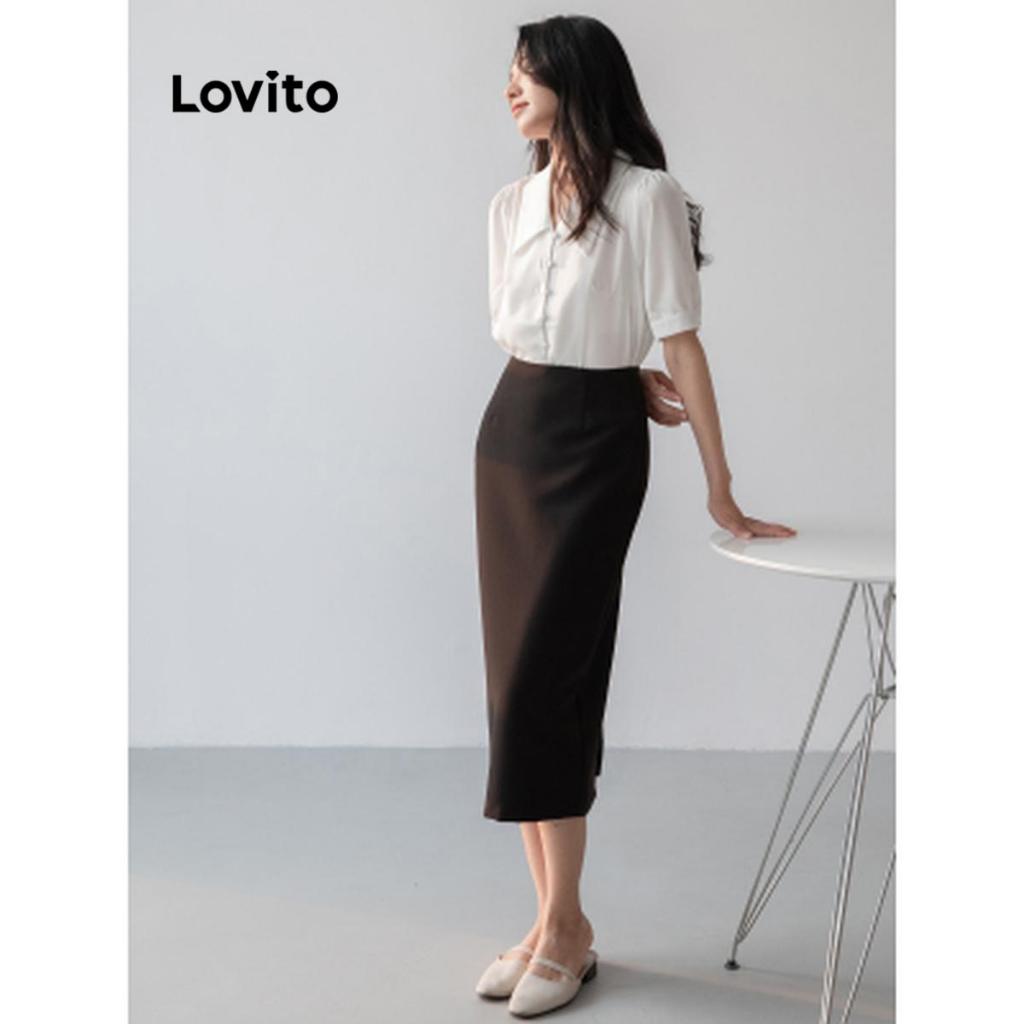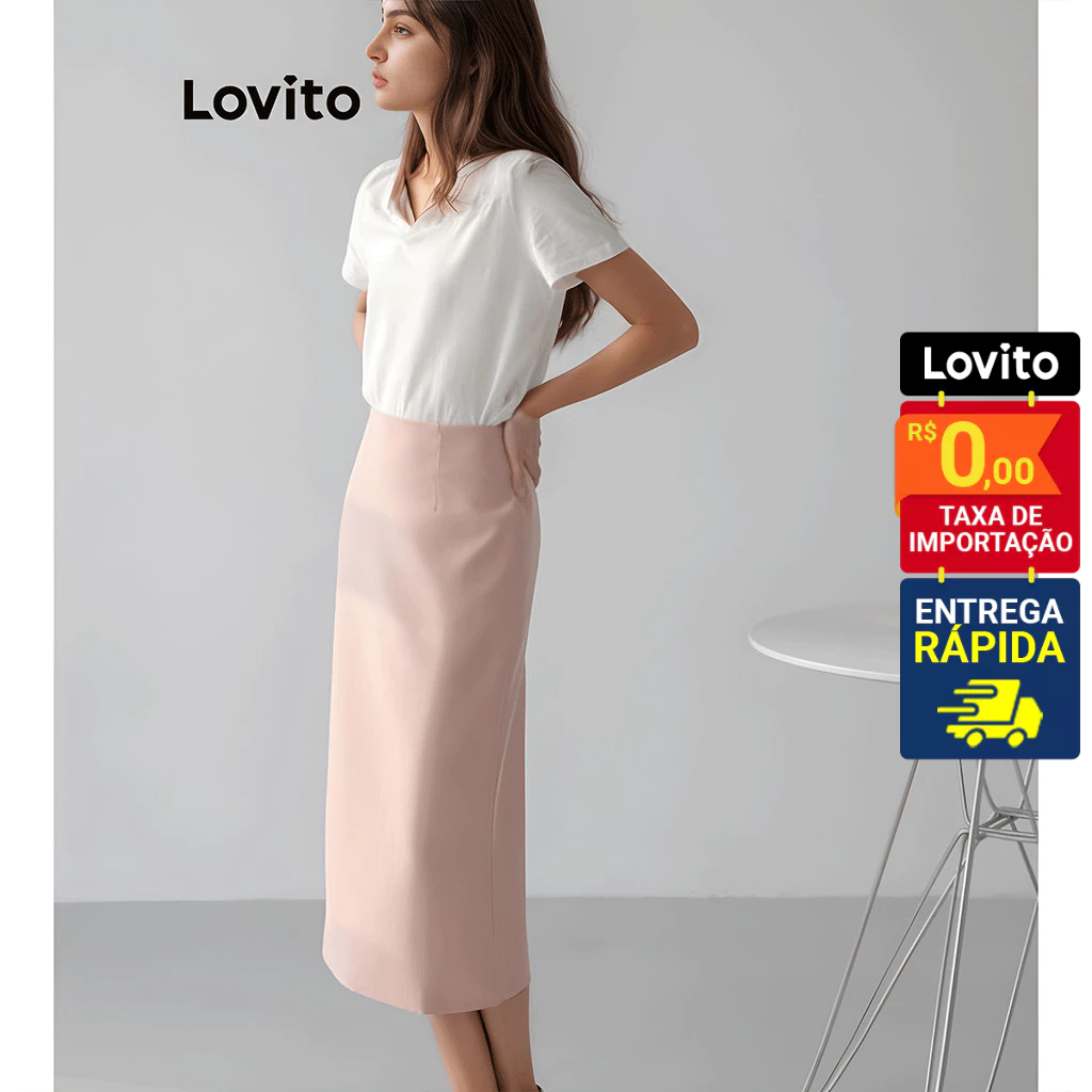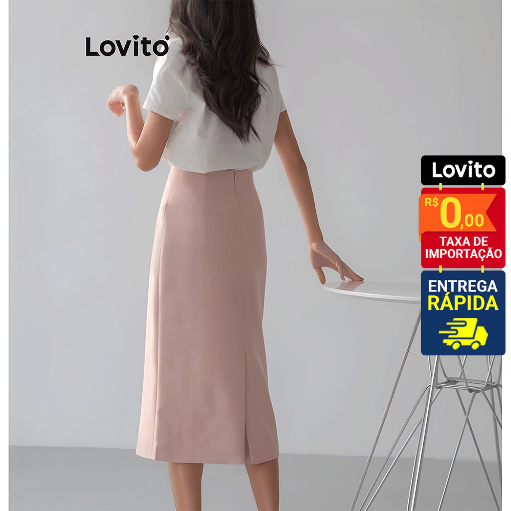 Lovito Saia Feminina Lápis Lisa com Fenda nas Costas LNE56515