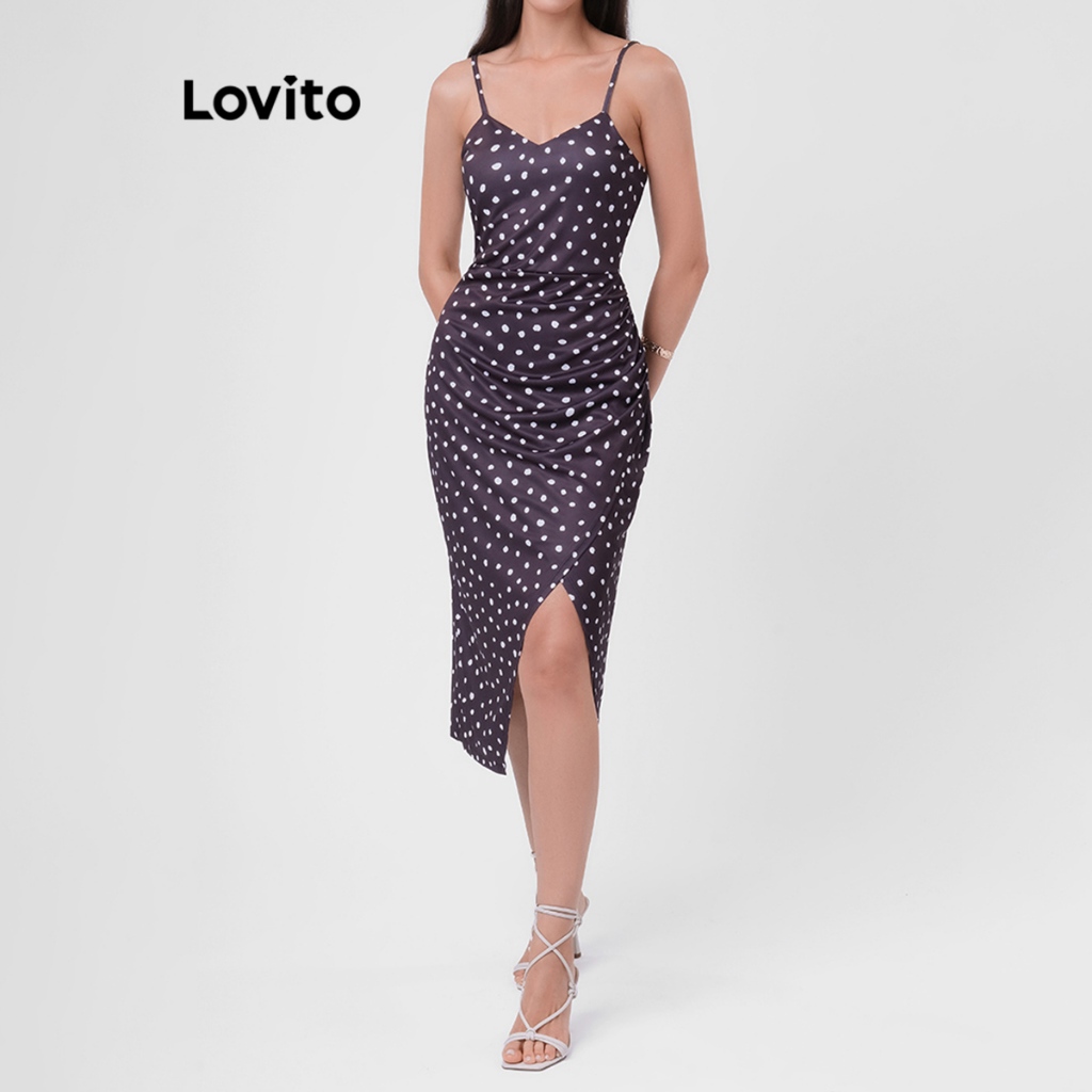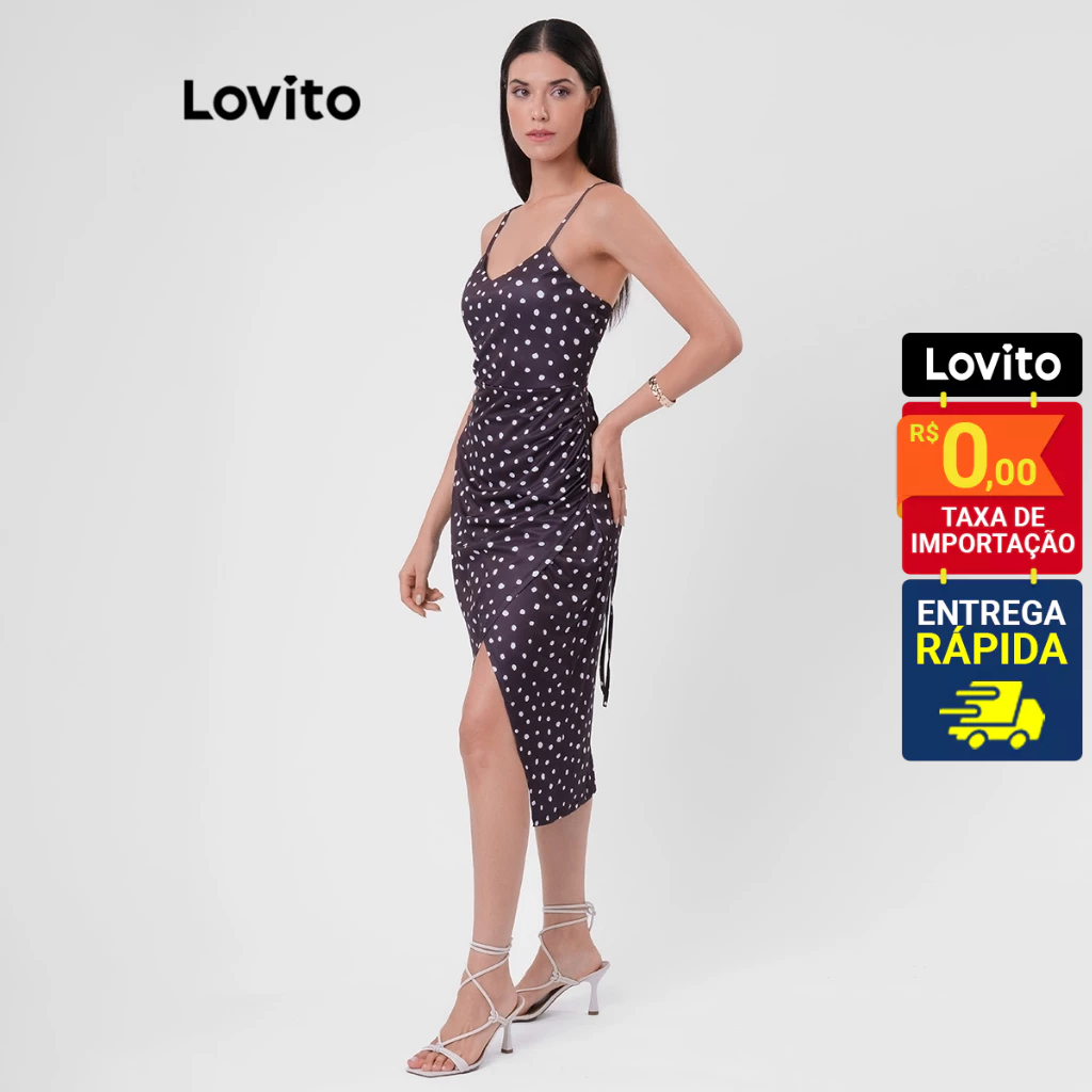 Lovito Vestido Elegante Decote V Polka Dot Ruffle Basico Feminino LB1BRL004