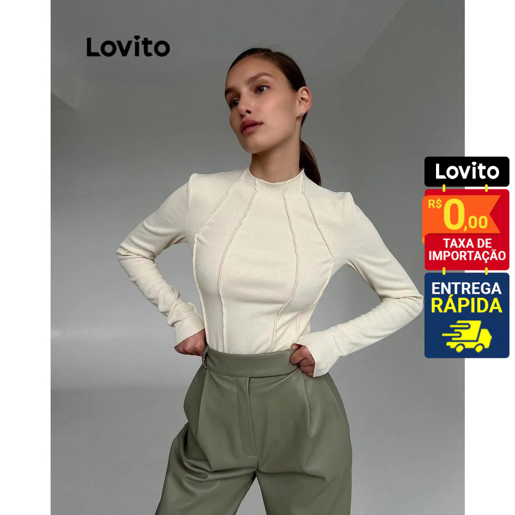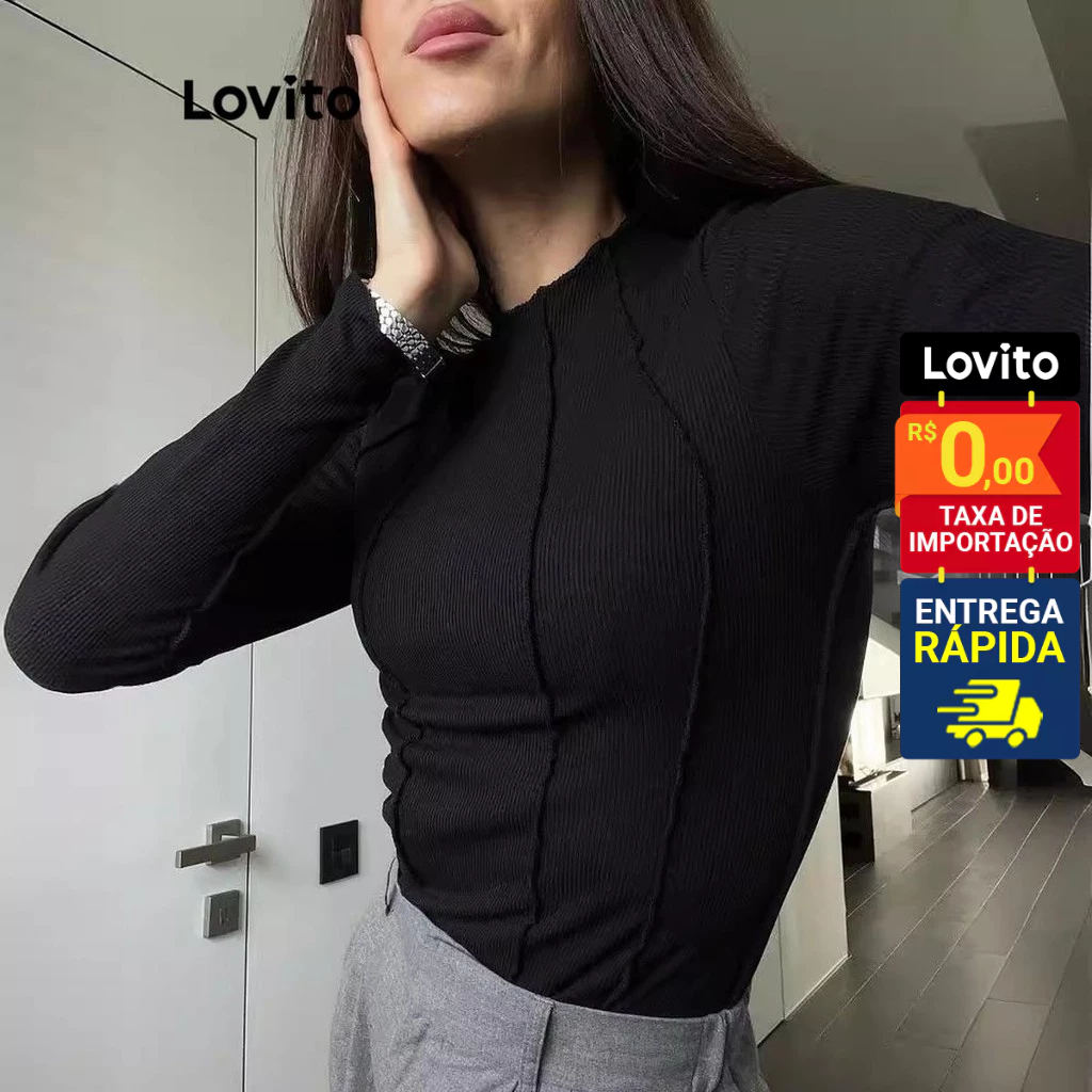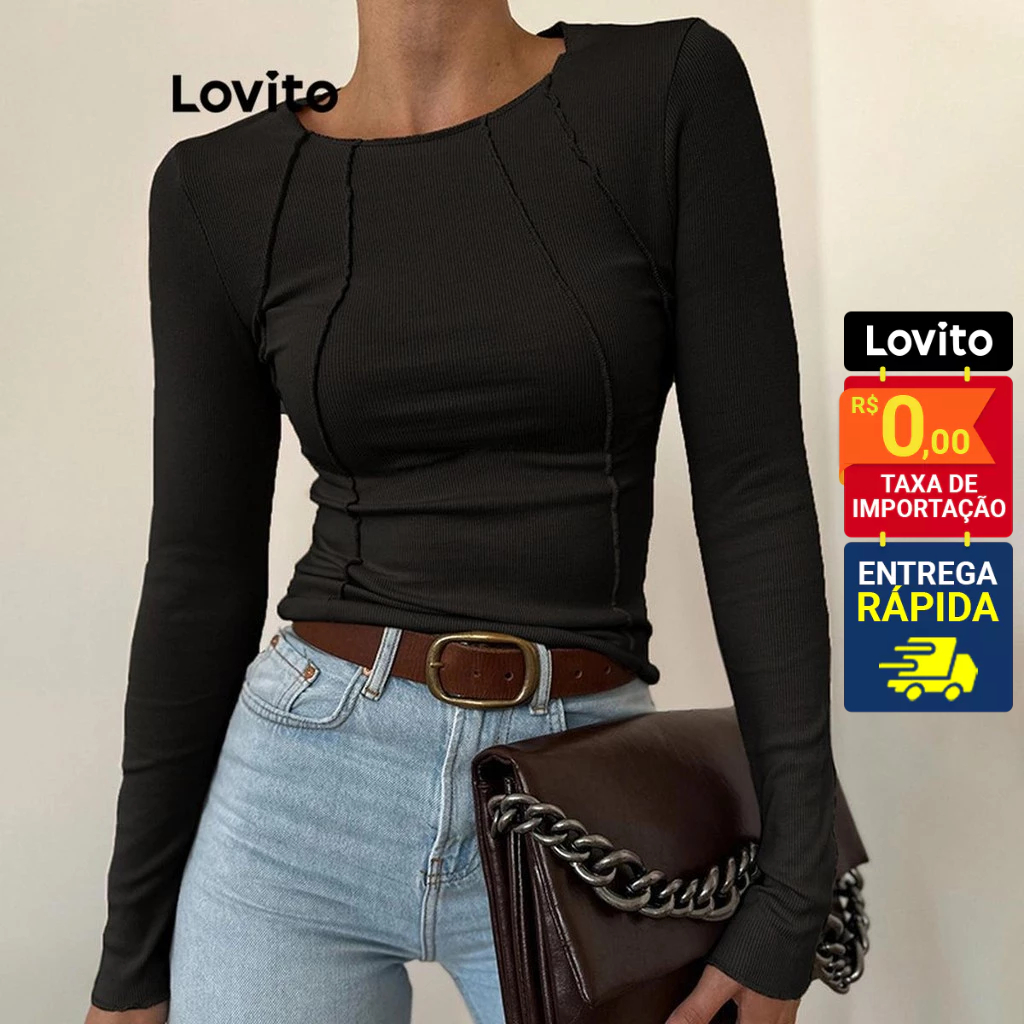 Lovito x Glenda Camiseta Feminina Manga Longa Lisa com detalhe de costura LNL56333