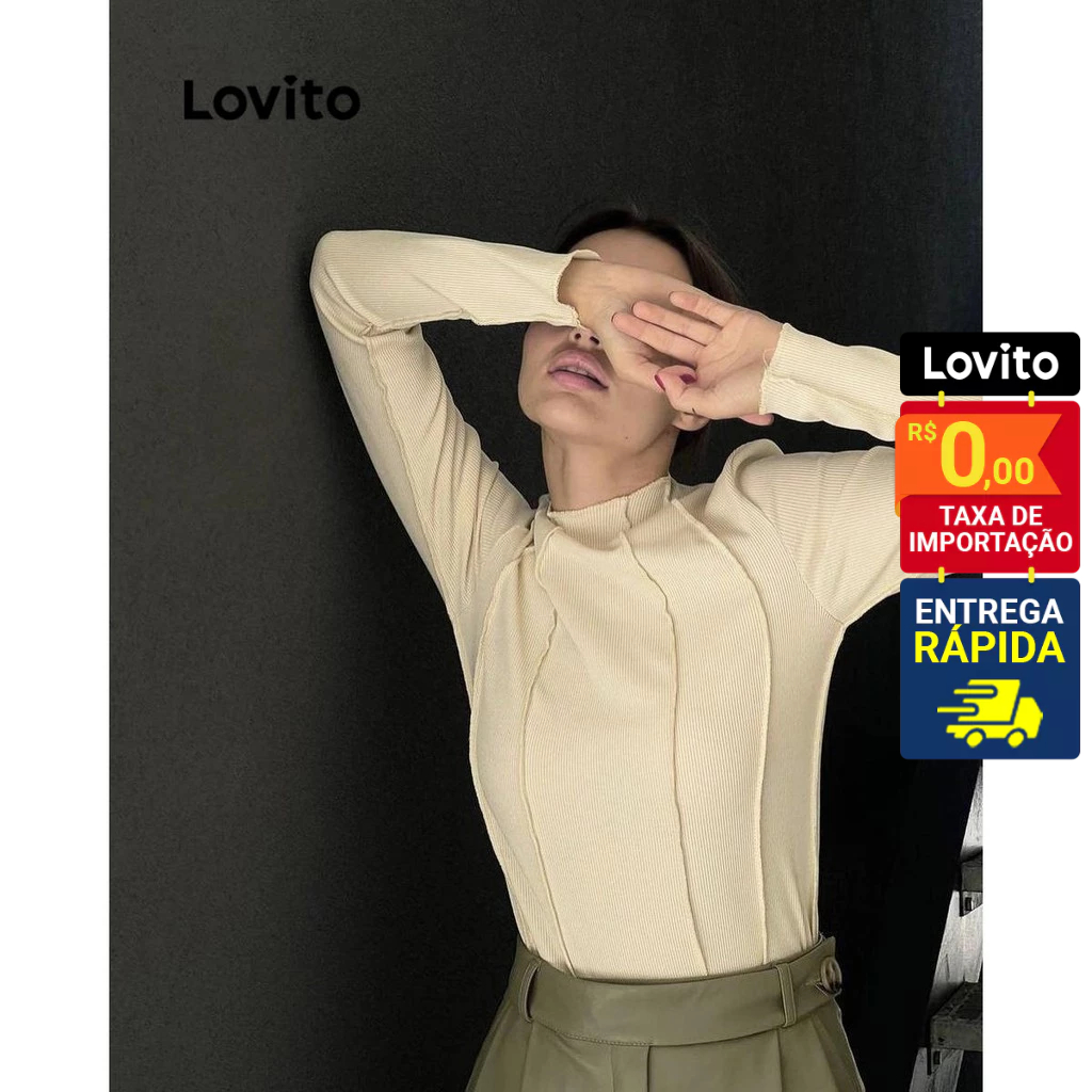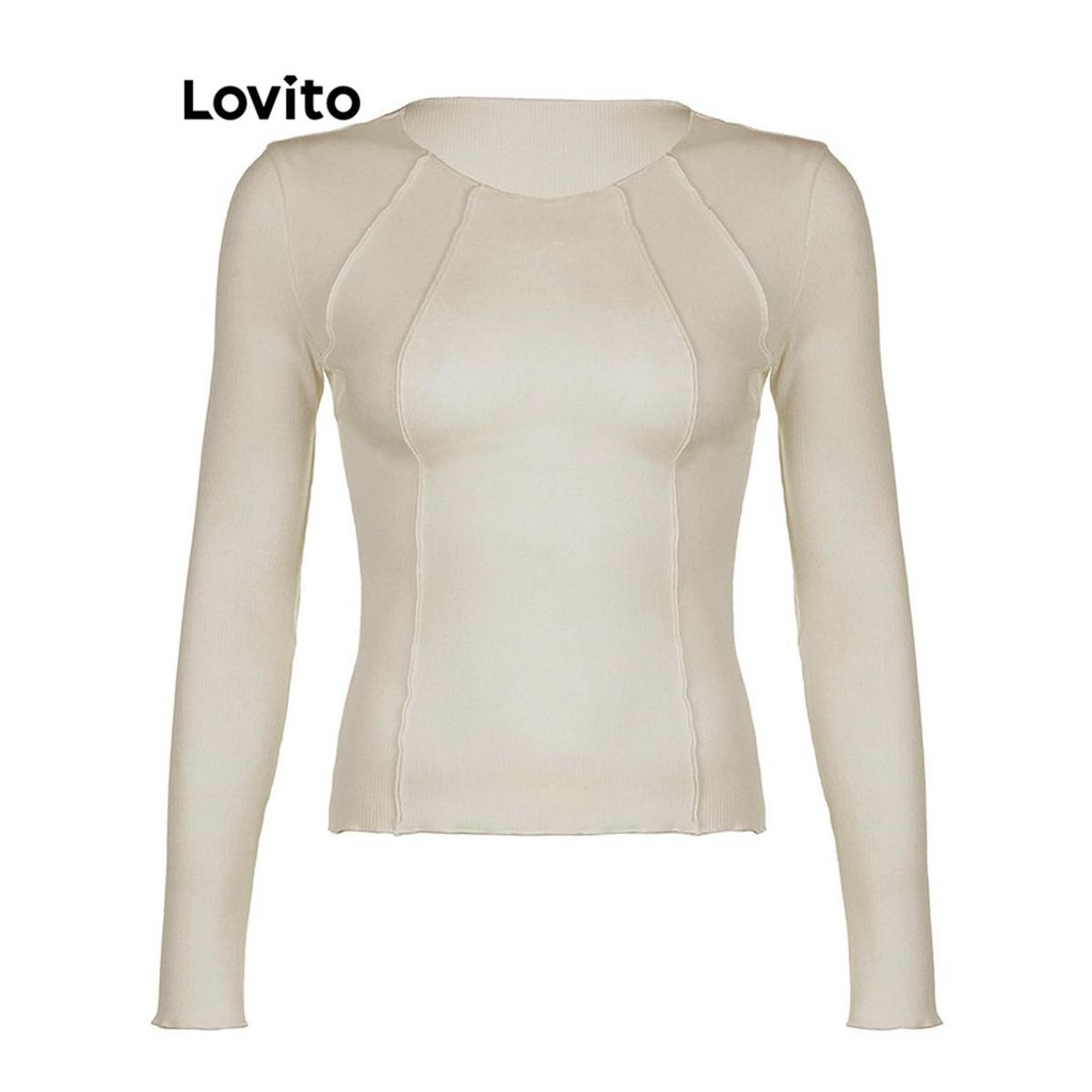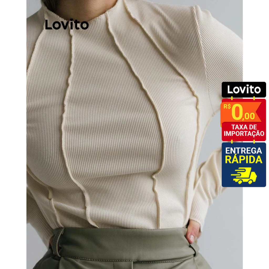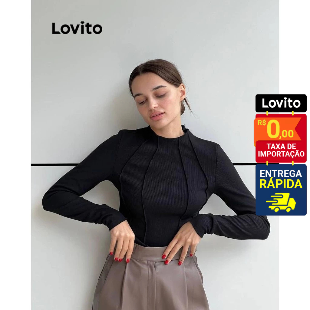 Lovito x Glenda Camiseta Feminina Manga Longa Lisa com detalhe de costura LNL56333