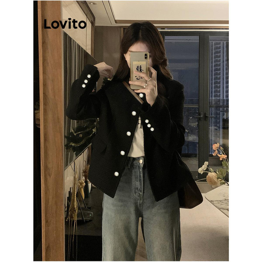 Lovito Jaqueta Casual Com Padrão Liso Para Mulheres LNA73411