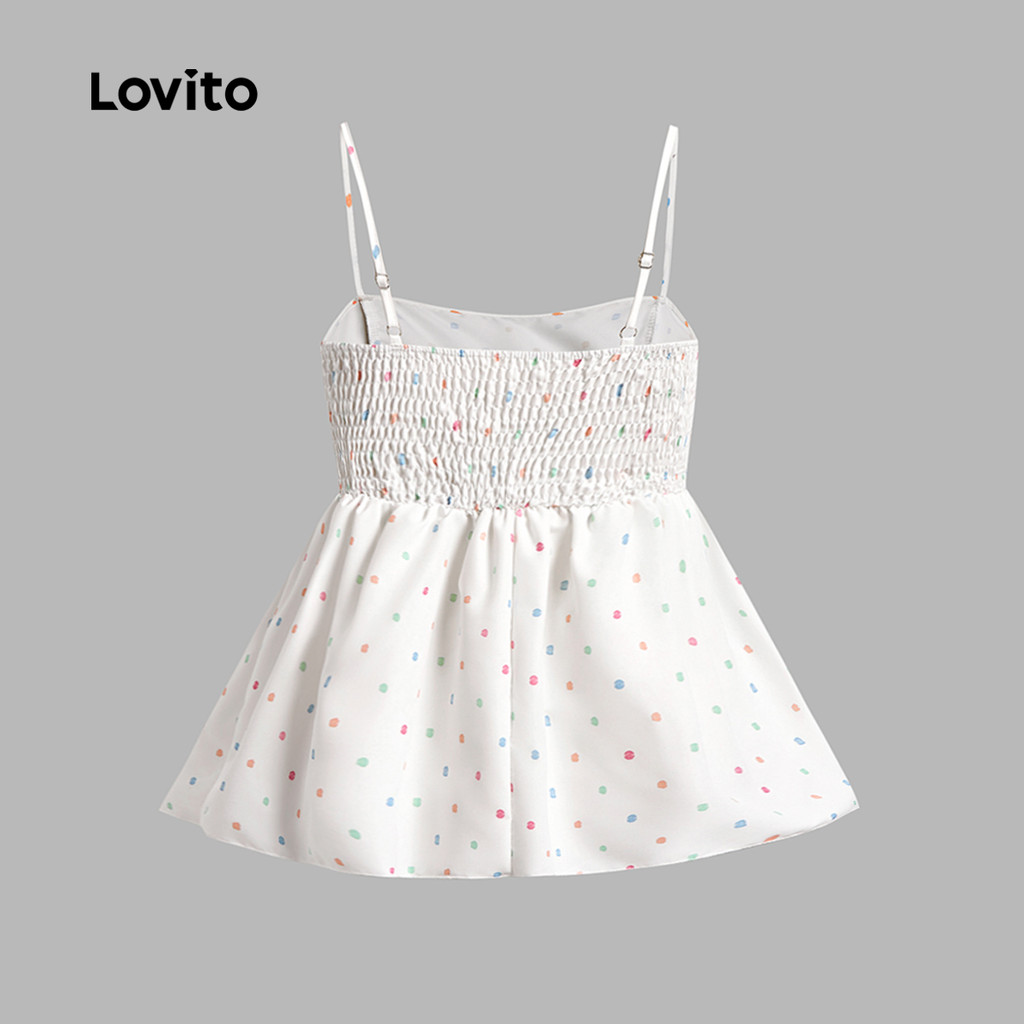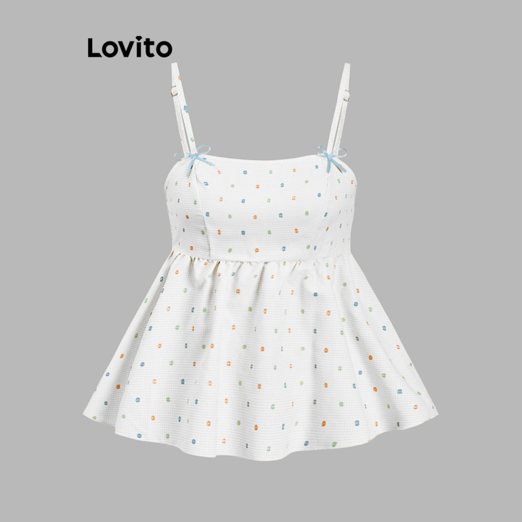Lovito Regata Fofa De Bolinhas Com Cadarço E Laço Para Mulheres L117AD0297