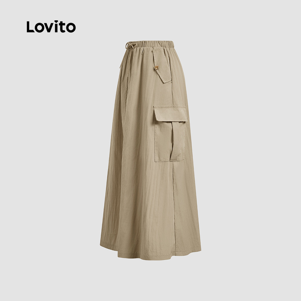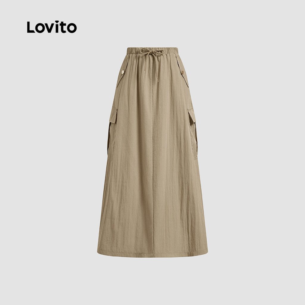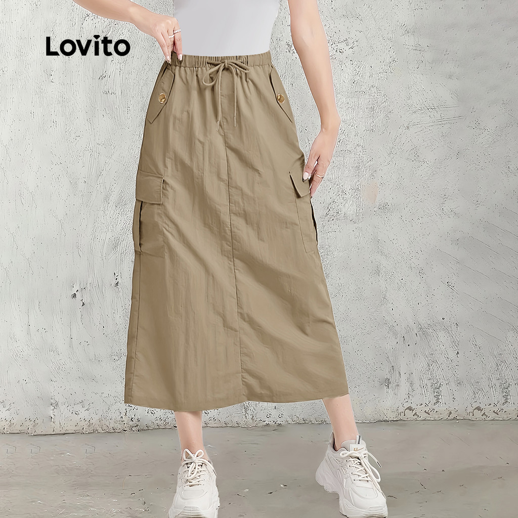 Lovito Saia Casual Lisa Com Bolso E Cordão, Saia De Verão/primavera Para Mulheres L132ED513