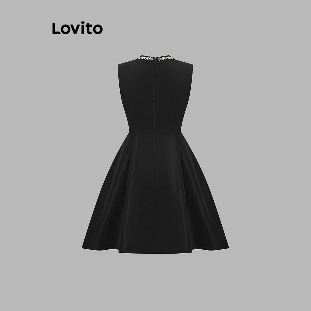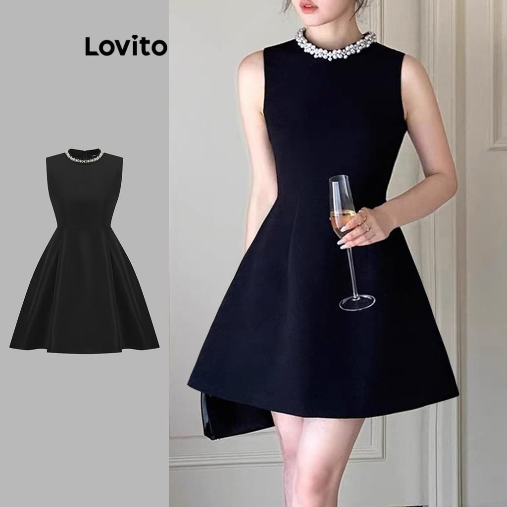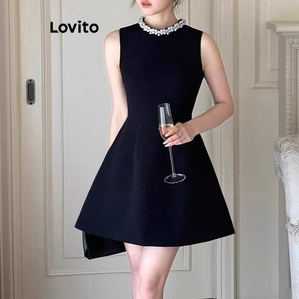 Lovito Vestido Casual Vestido De Pérolas Lisas Para Mulheres L109MD175