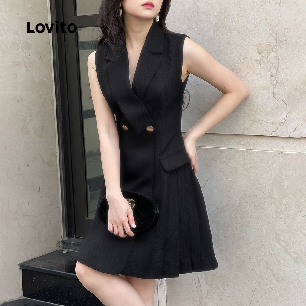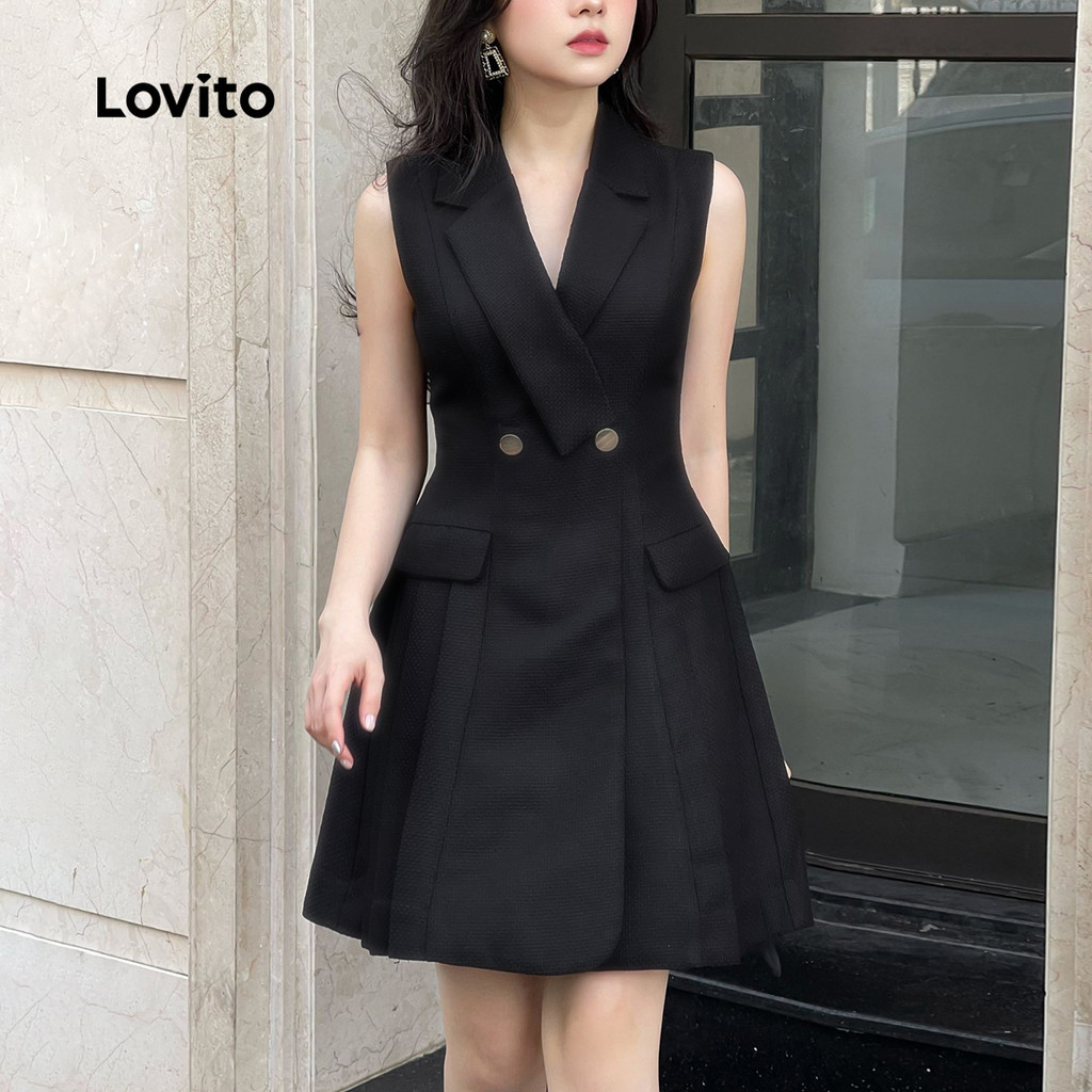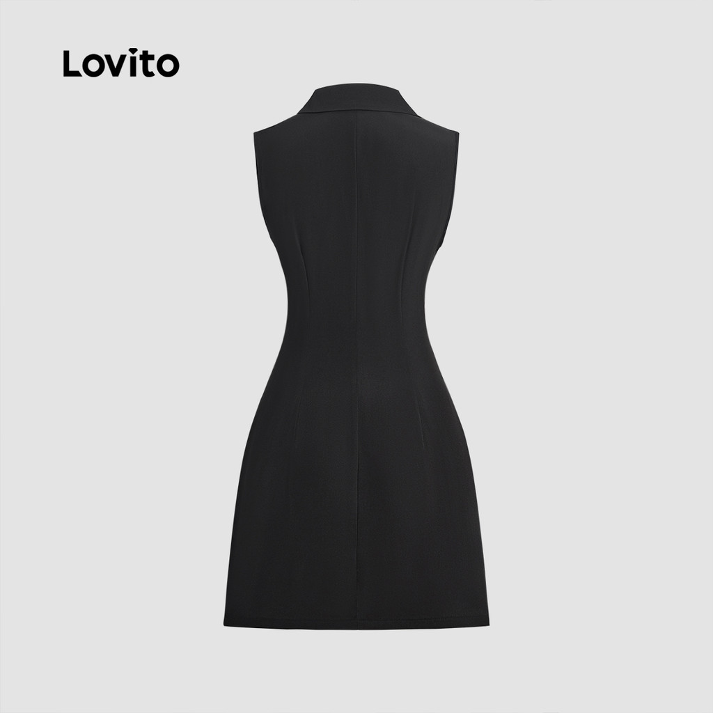 Lovito Vestido elegante e liso com estrutura de bolso falso e botão frontal para mulheres L129ED158