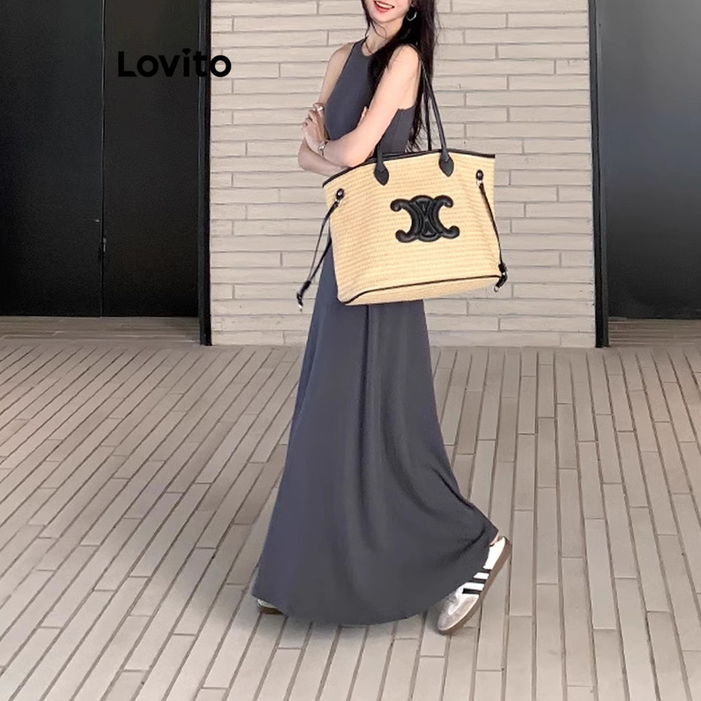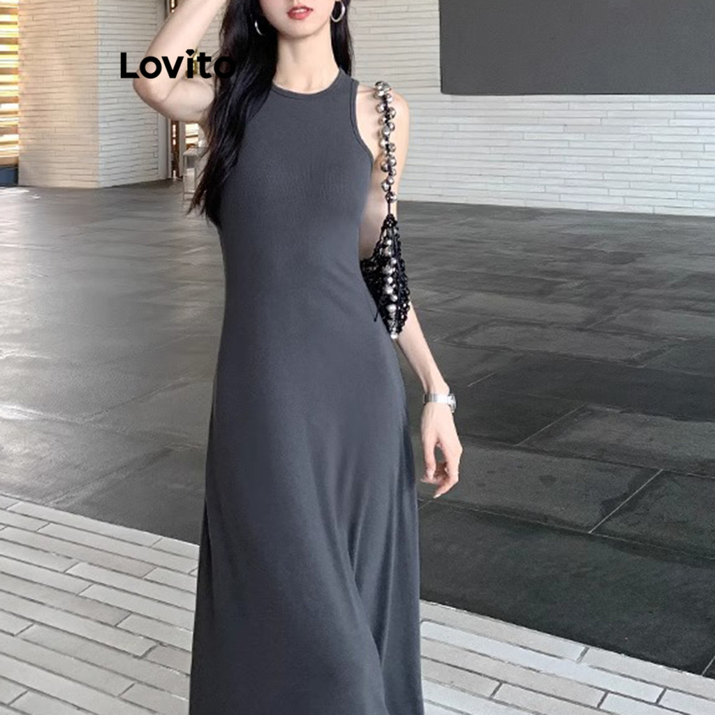 (Hot) Lovito Vestido Básico Casual De Verão/Primavera Para Mulheres LNA65518