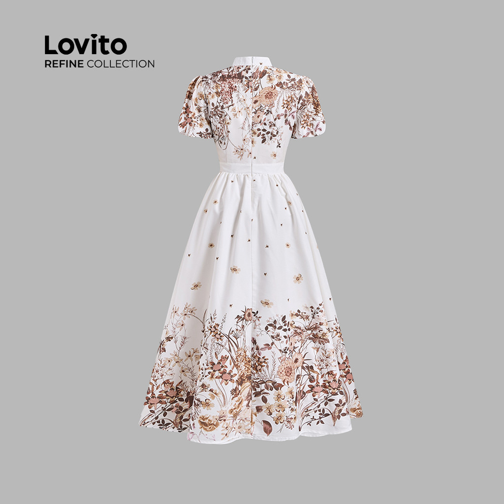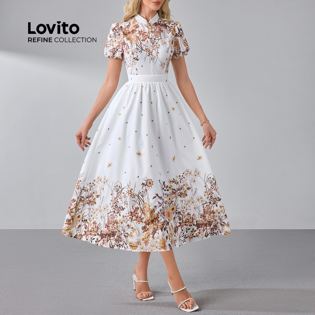 (NEW) (Lovito Refine) Vestido Elegante com Flores Vestido Primavera/verão para Mulheres LR13L009