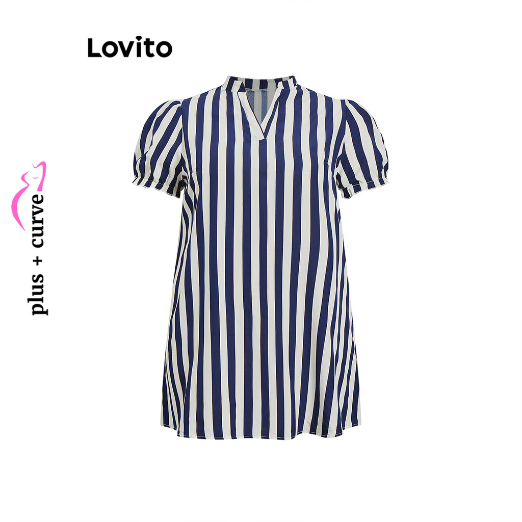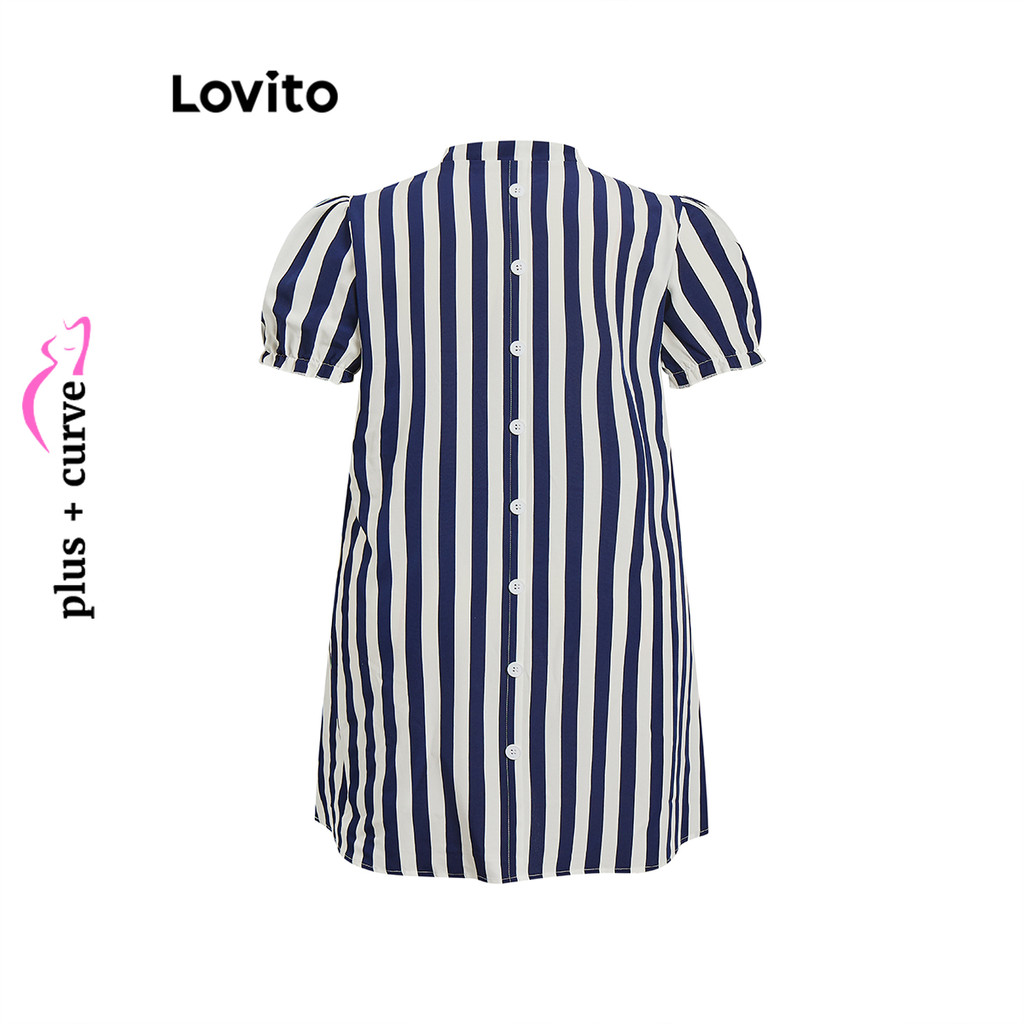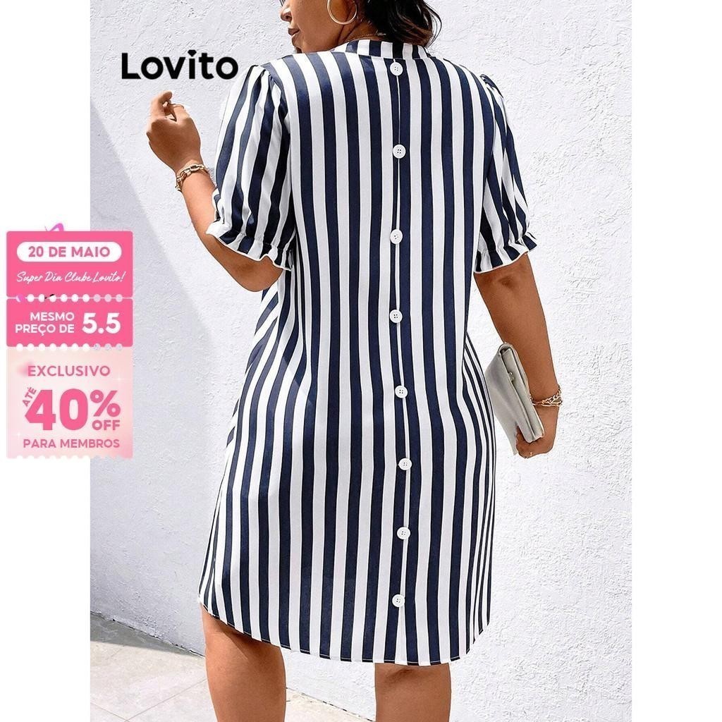 Lovito Vestido Curvo Plus Size Boho Listrado Com Babados E Botões Para Mulheres LBL15492