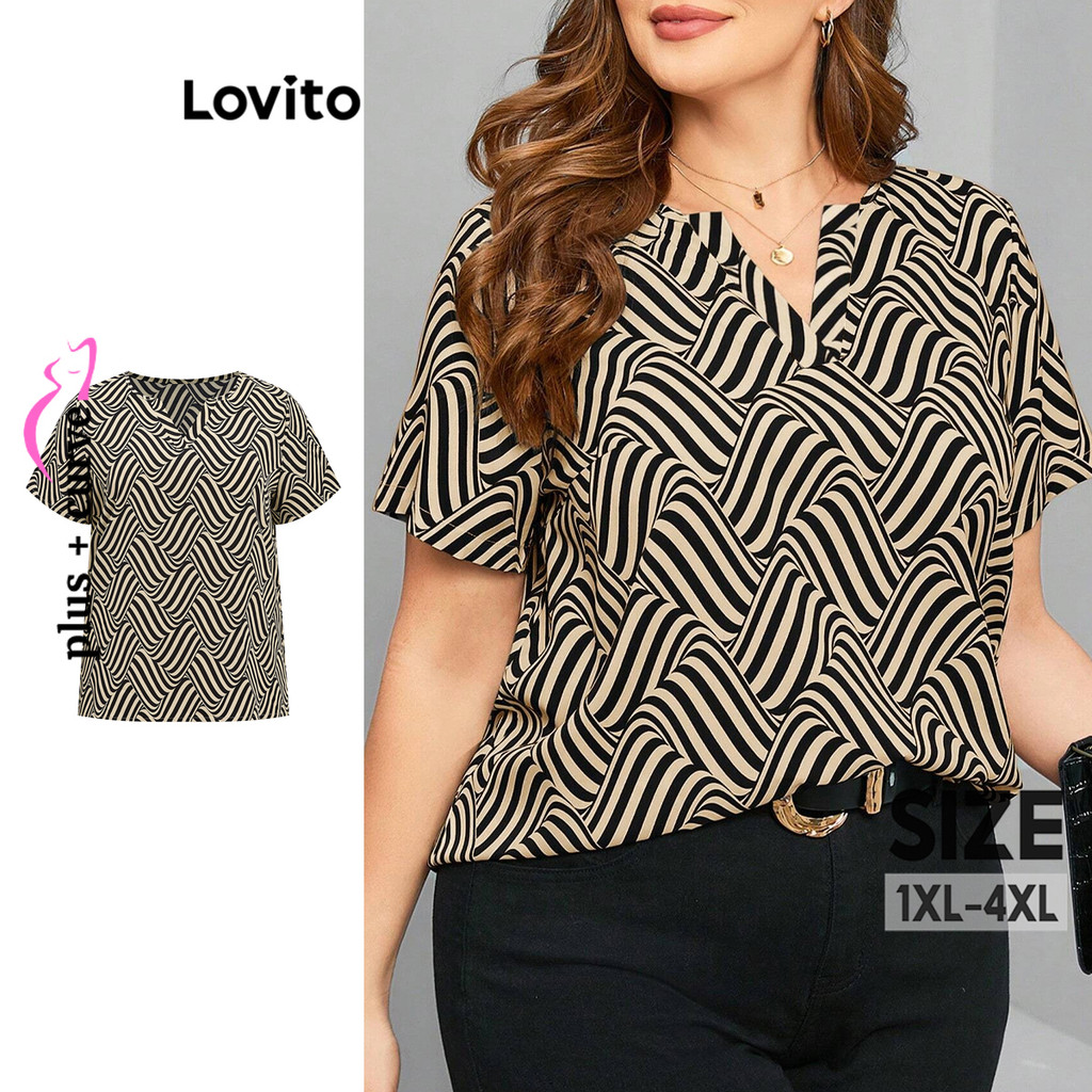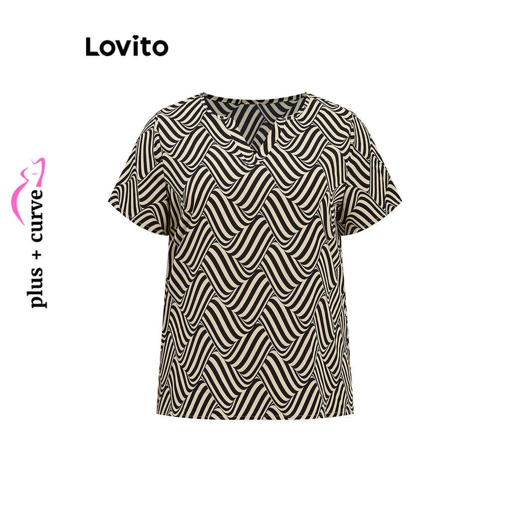 Lovito Blusa Curva Plus Size Blusa Geométrica Elegante Para Mulheres LBL16674