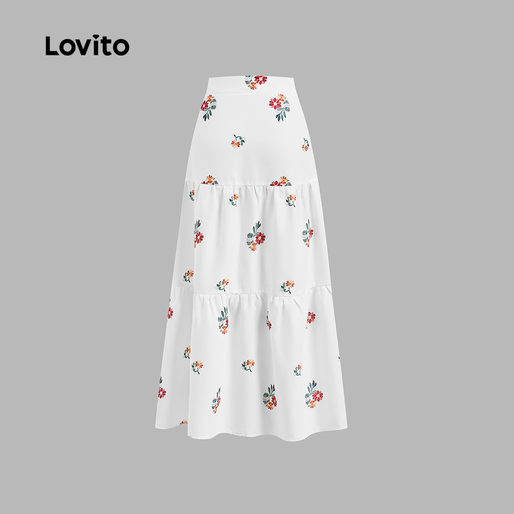 Lovito Saia Casual Confortável E Estilosa Com Estampa Floral Miúda Em Camadas Verão/primavera Para Mulheres L128ED840
