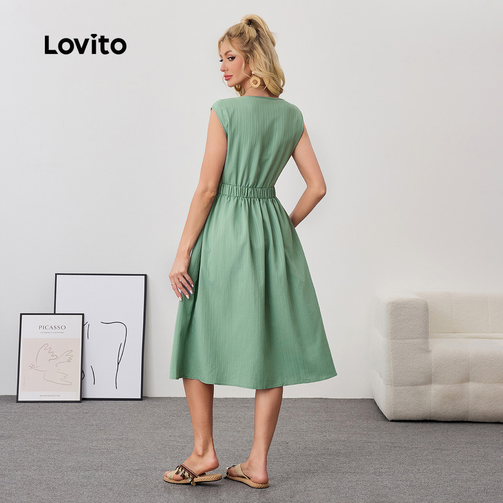 Lovito Vestido Casual Liso Com Cordão Jacquard Vestido De Verão/primavera Para Mulheres LBL24345