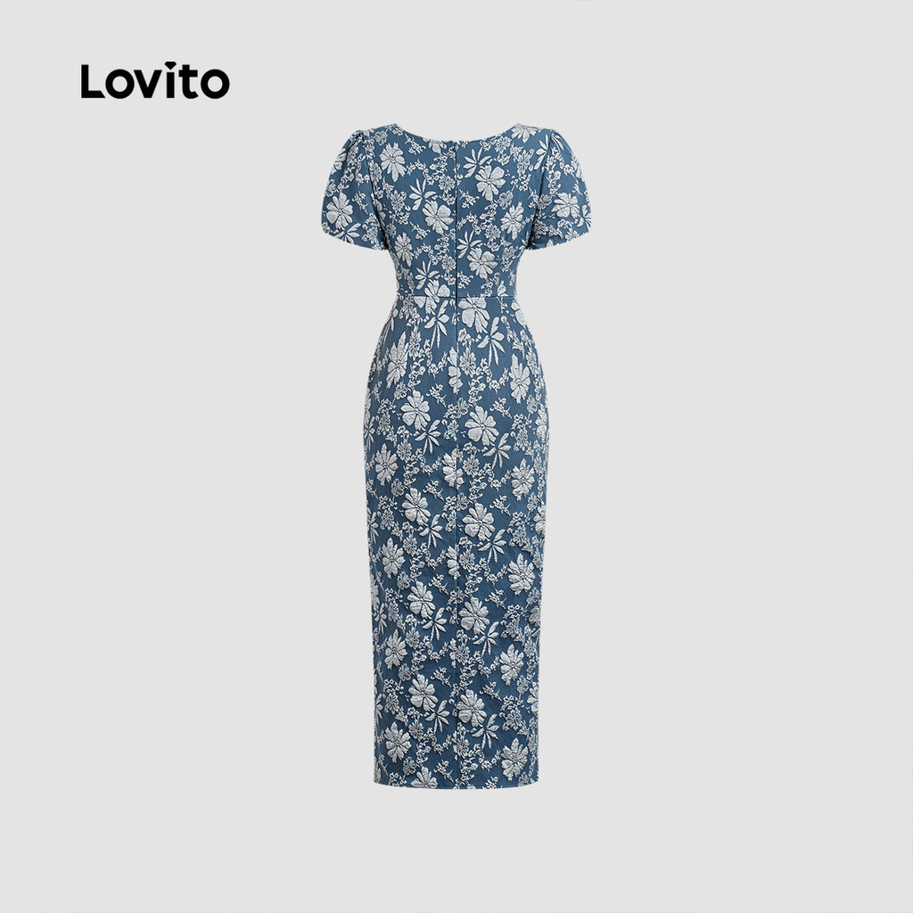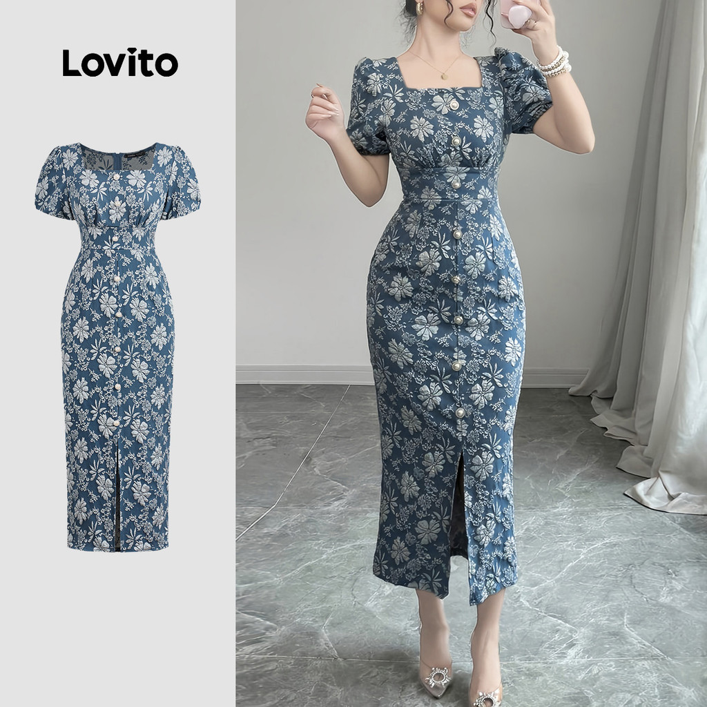 Lovito Vestido Casual Francês Estilo Preguiçoso com Pérolas Primavera/verão Azul para mulheres L150AD1621