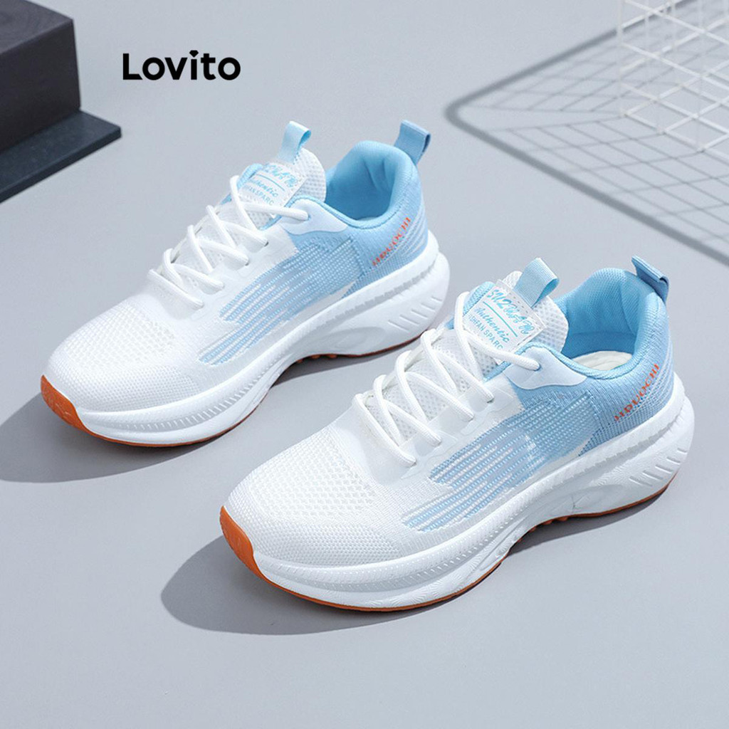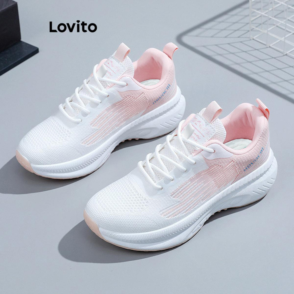 Lovito Tênis Casuais Liso Colorblock Malha Superfície Respirável Tênis De Amortecimento Leve Para Mulheres LFA59234