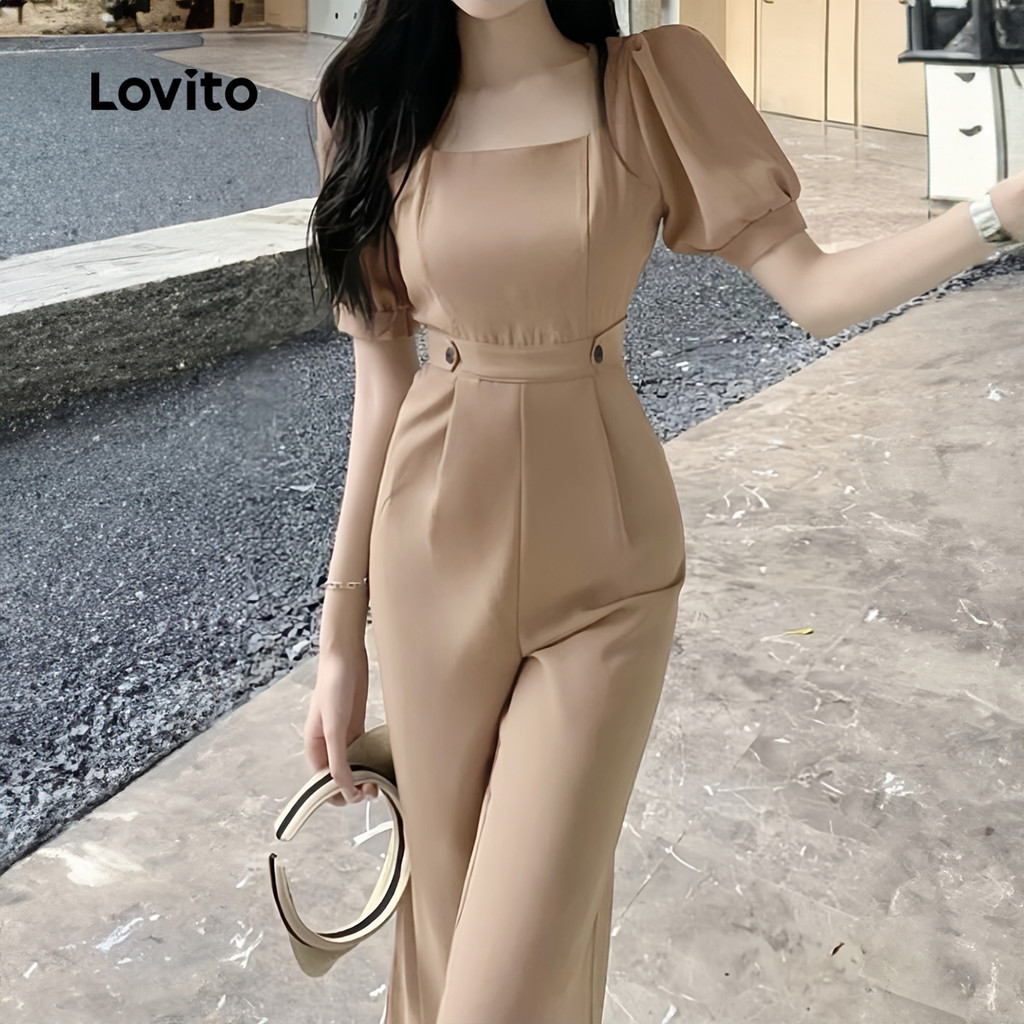 Lovito Macacão Casual com Botões Primavera/verão em Caqui para Mulheres L150AD1897