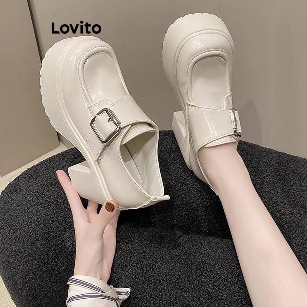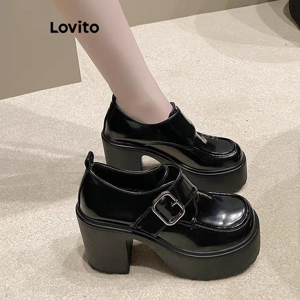 Lovito Saltos elegantes com fivela lisa para mulheres LFA66266