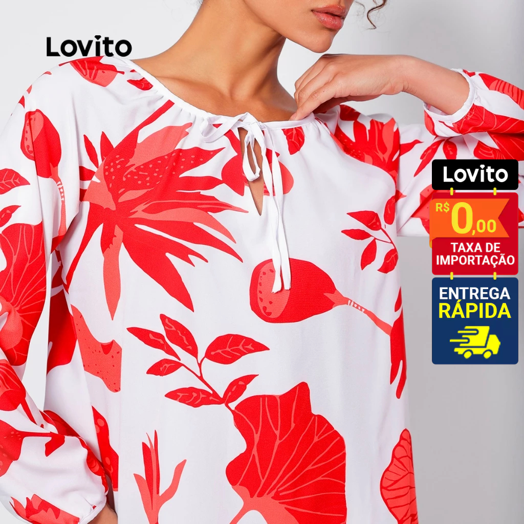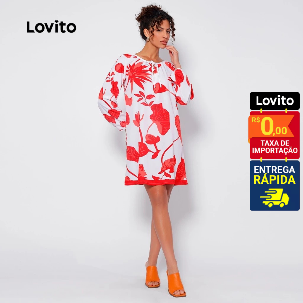 Lovito Vestido Manga Longa Curto Com Estampa Floral Feminino LB173BRL202