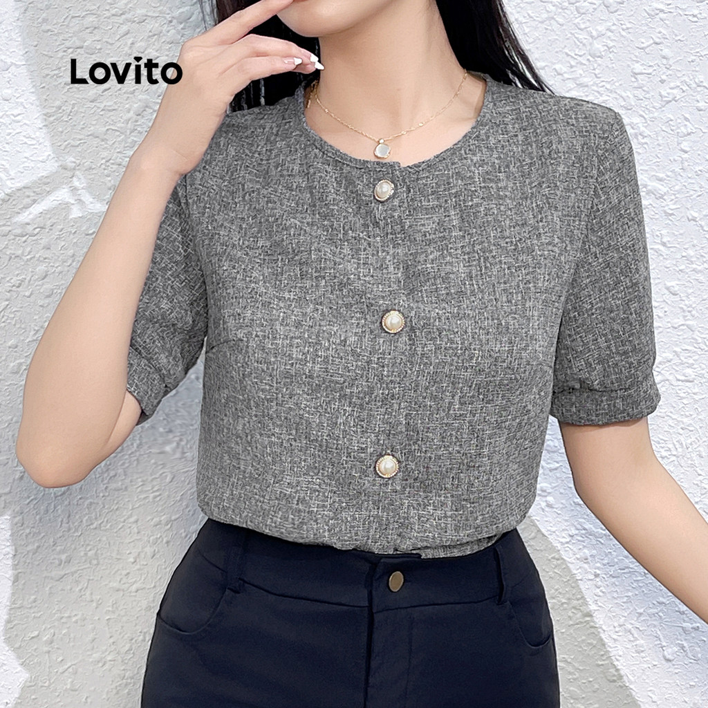 Lovito Blusa Boho Lisa Com Botões Frontais, Blusa De Verão/primavera Para Mulheres L132ED648