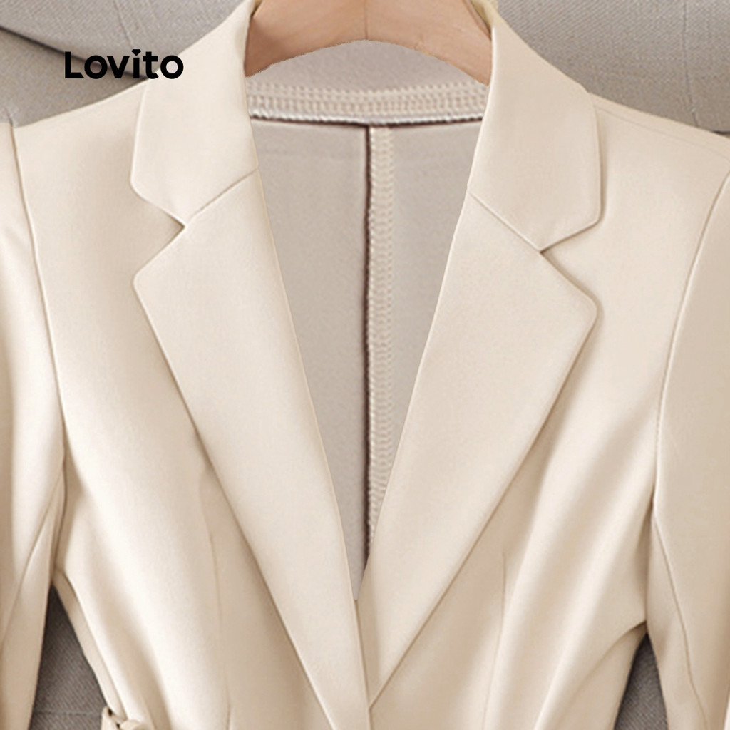 Lovito Blazer Feminino Elegante e Minimalista com Bolso Decorativo para Primavera/Verão, Off-white, LNL103521