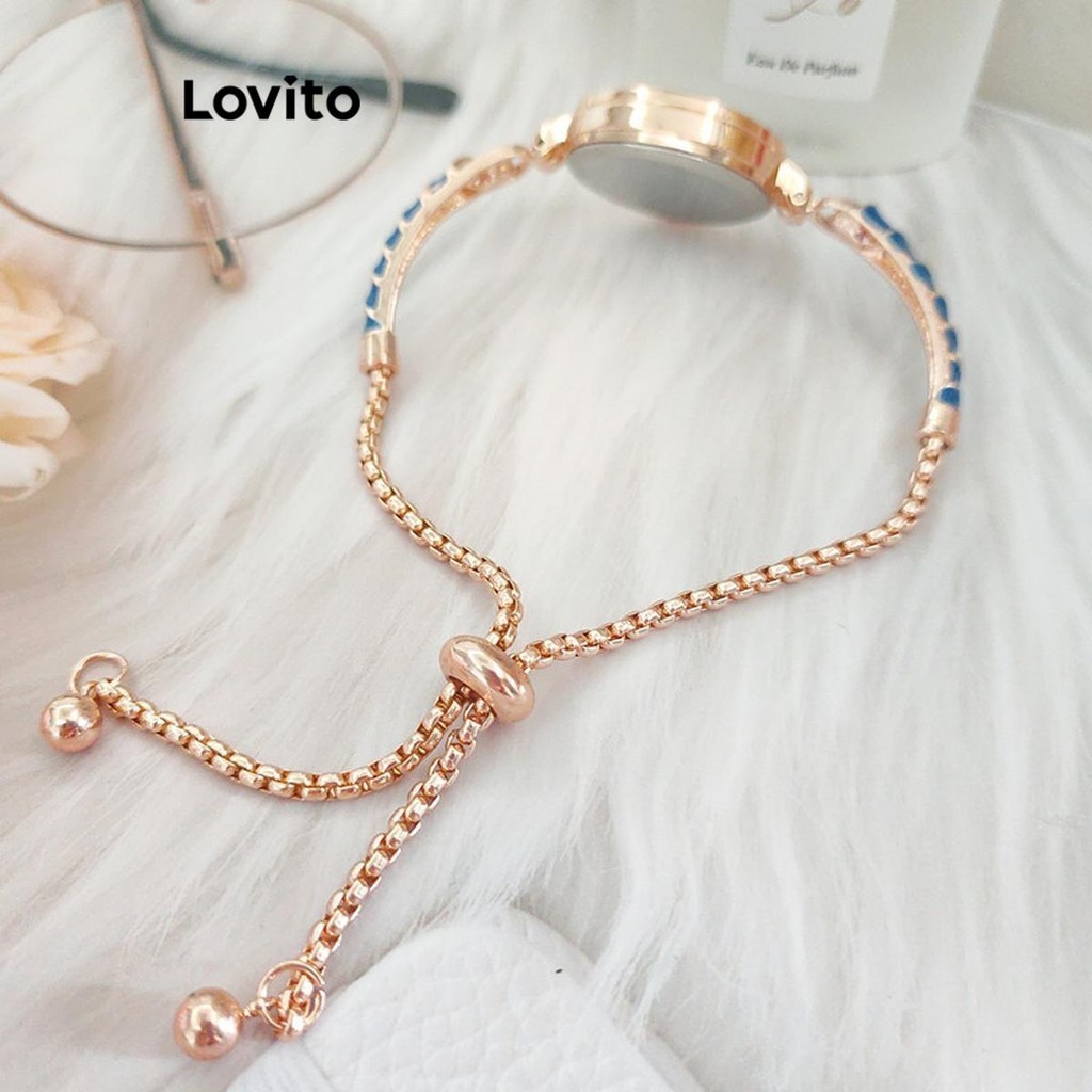Relógio feminino Lovito com quartzo resistente à água, strass liso e esmalte elegante LFA30366