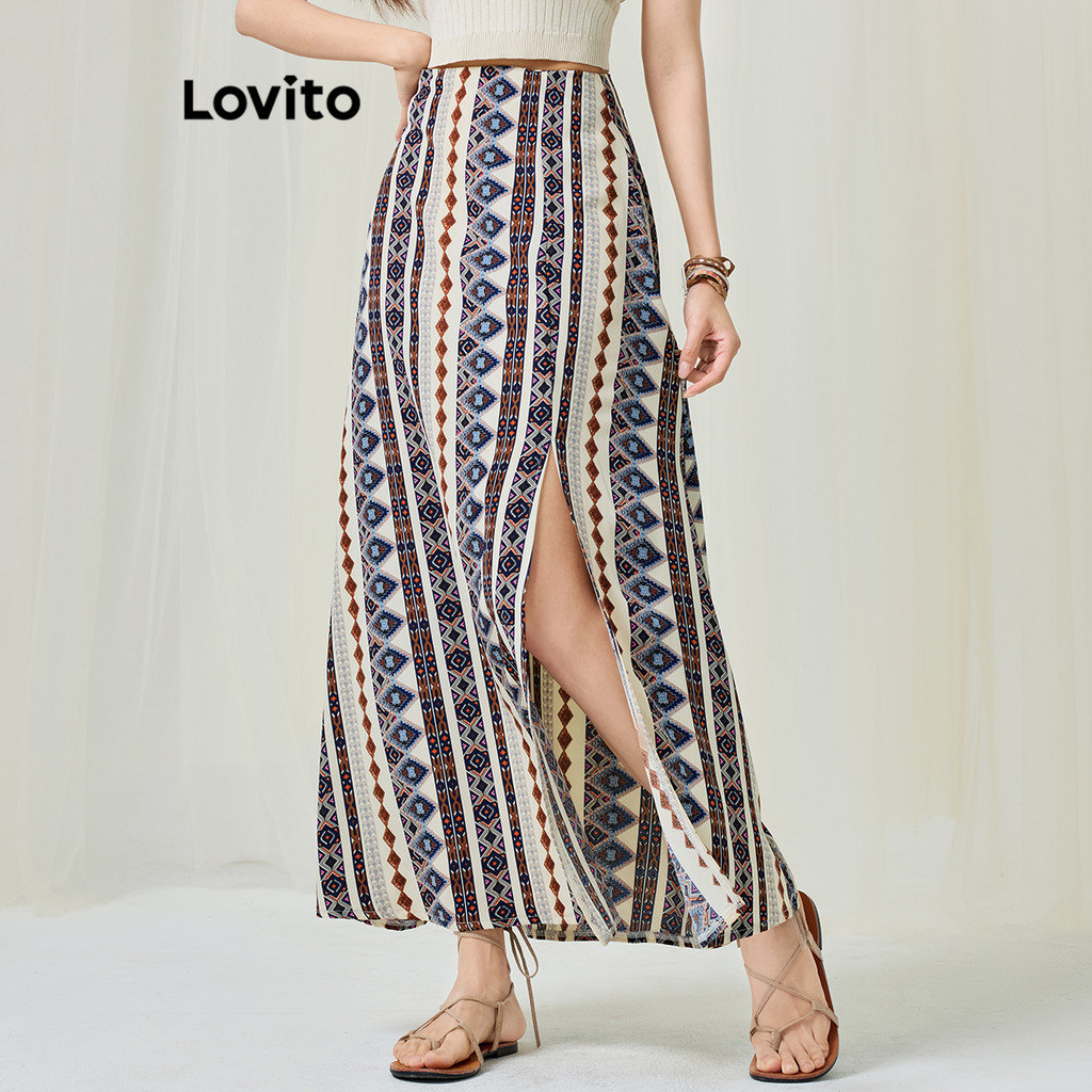 Lovito Saias Boho Com Frente Dividida Geométrica Para Mulheres L113MD287