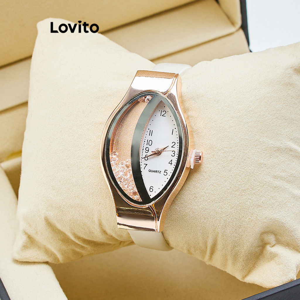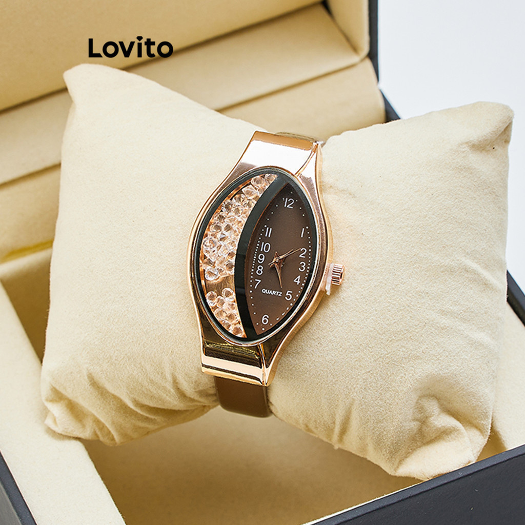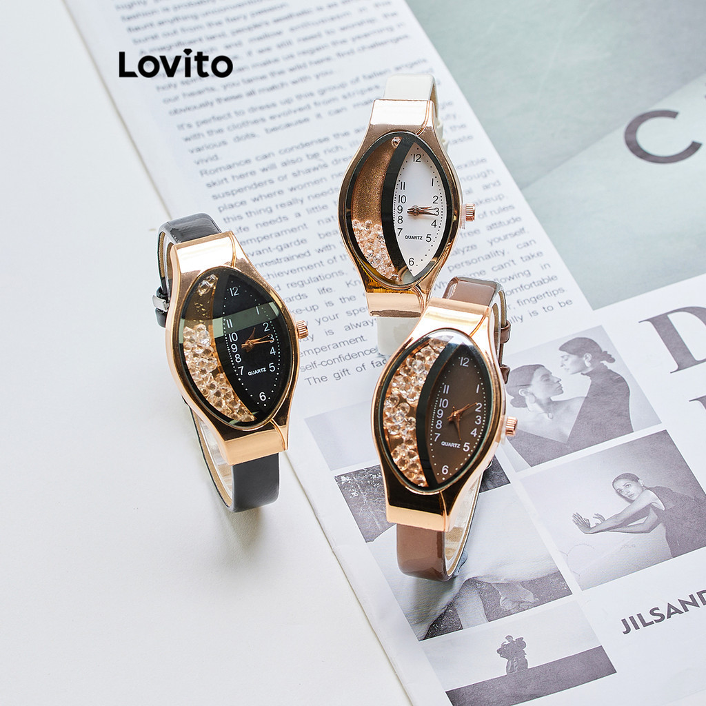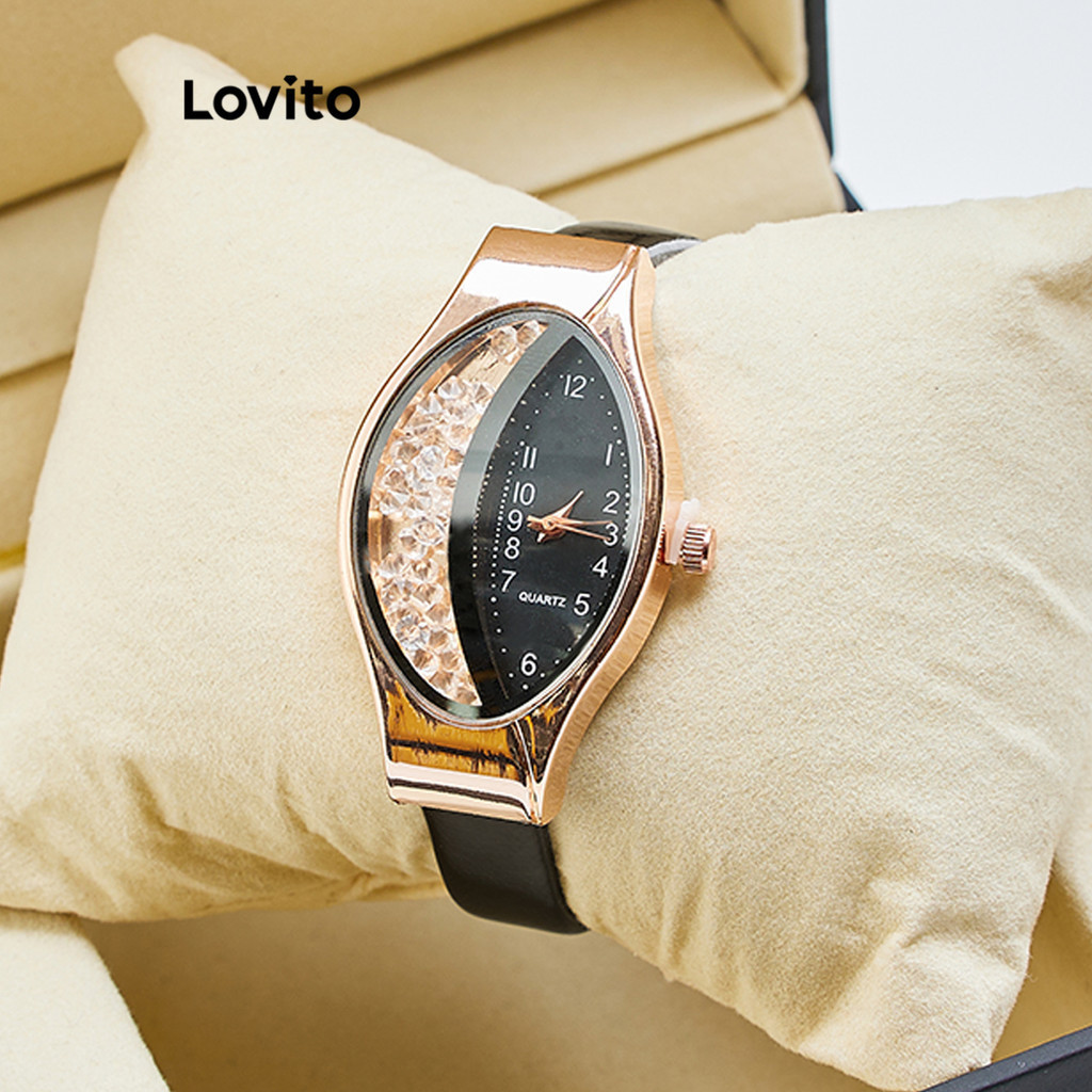 Lovito Relógio Casual Feminino Quartzo Estampa Pele de Cobra com Strass Assimétrico e Versátil LFA78161