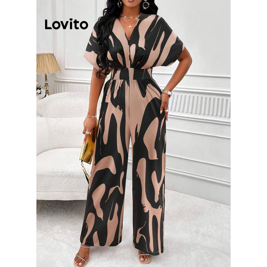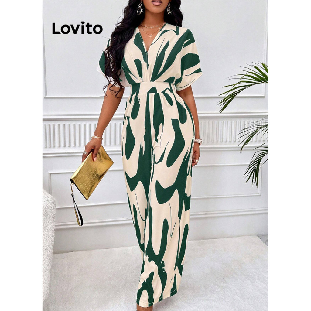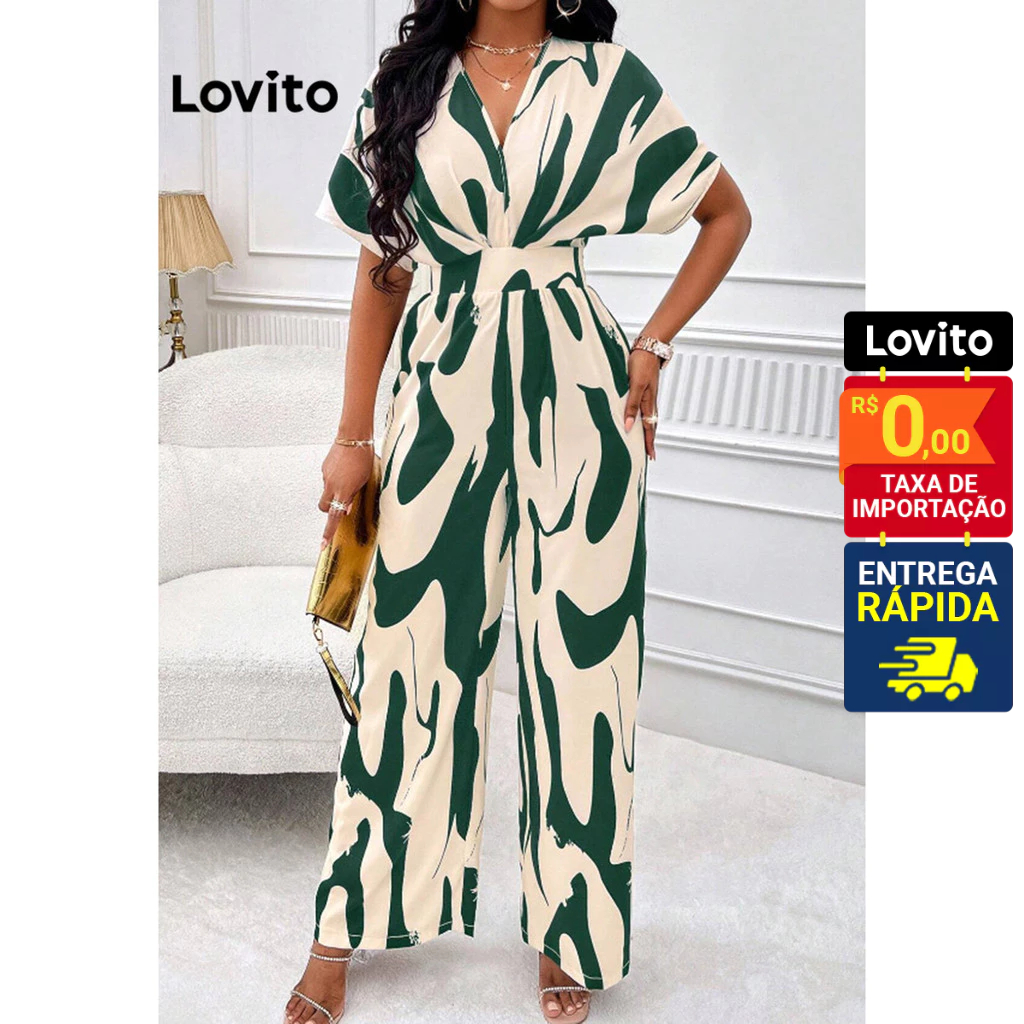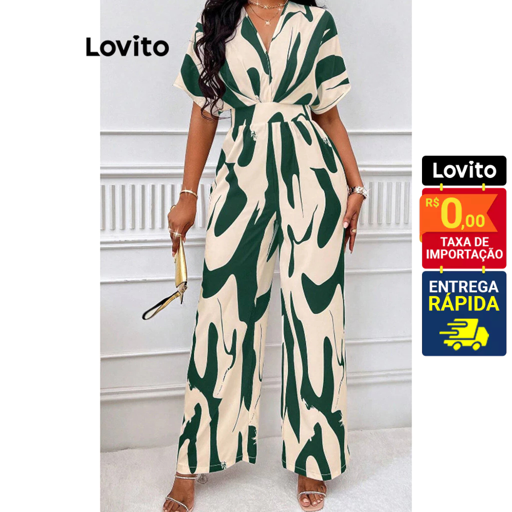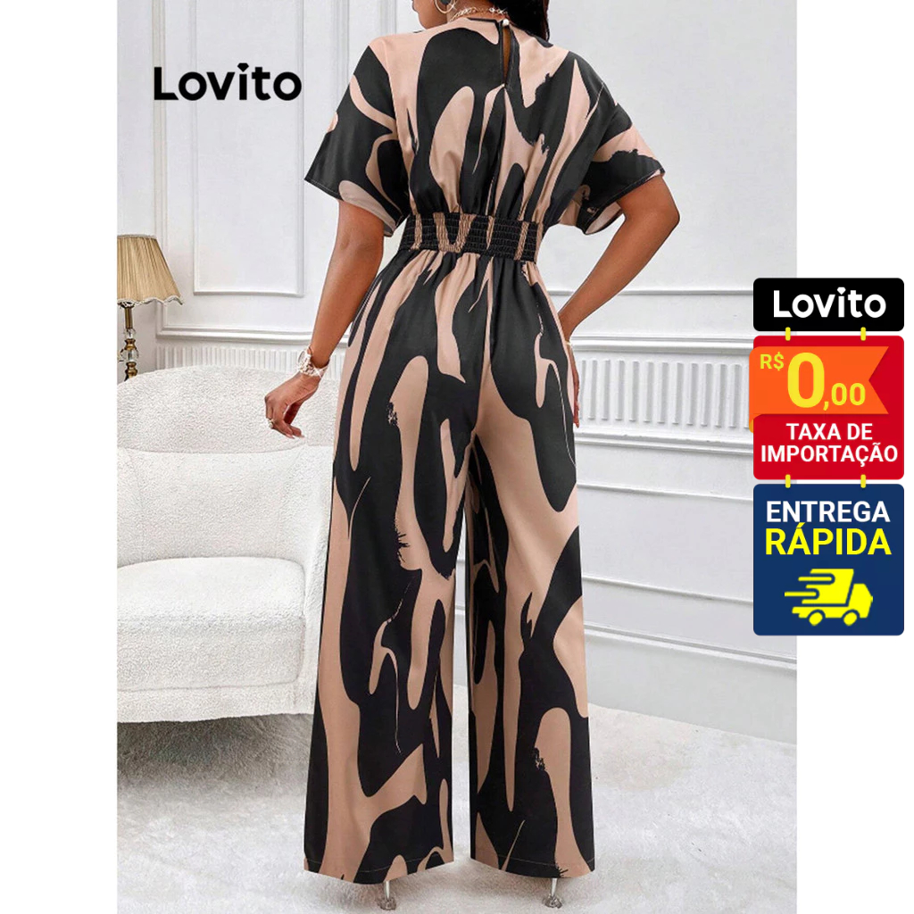 Lovito Macacão Feminino Elegante Estampado Elástico Cintura LNL39159