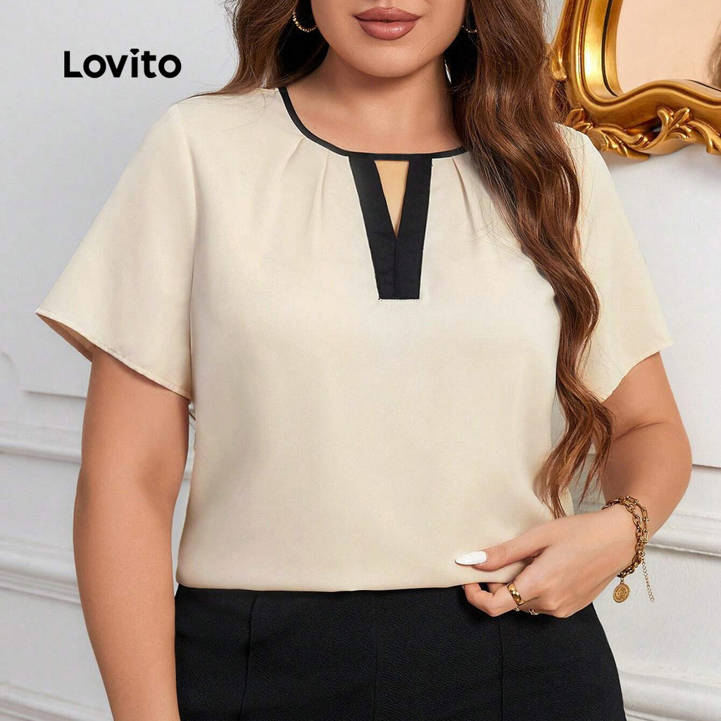 Lovito Blusa Elegante Plus Size Com Modelagem Lisa E Blocos De Cores Para O Verão/primavera LBL24306