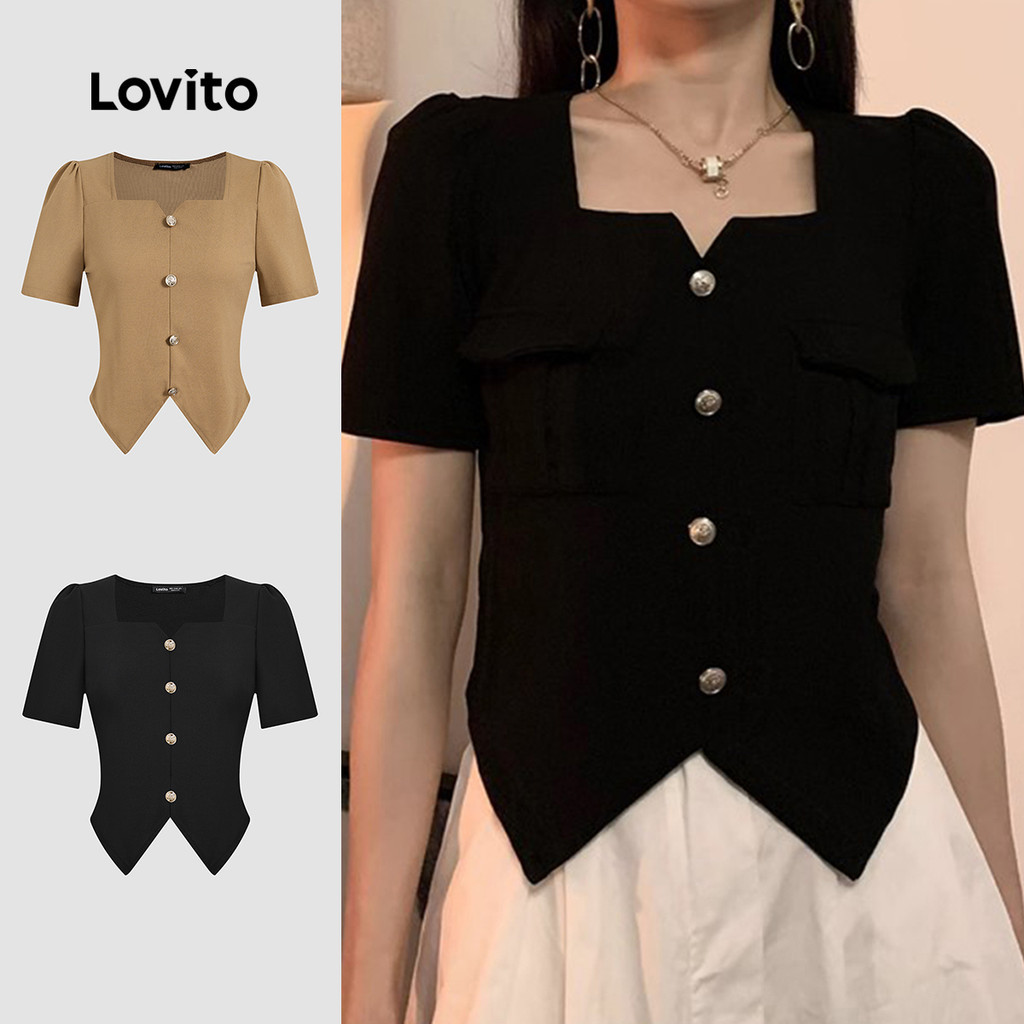 Lovito Blusa Elegante De Verão Com Botão De Metal Liso Dividido Na Frente Para Mulheres L121MD620