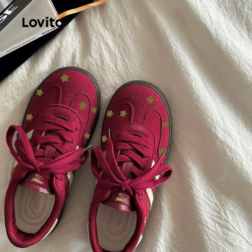 Lovito Tênis esportivo liso Colorblock flores versátil sola grossa fundo macio leve para mulheres LFA76377