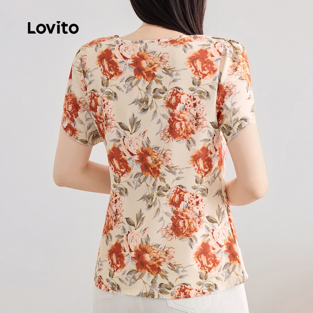 Lovito Blusa Casual Assimétrica com Flores Blusa de Primavera/verão para Mulheres L143ED131