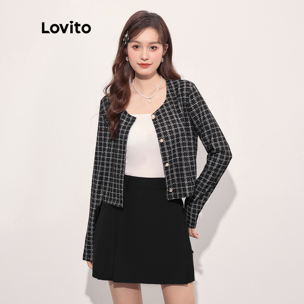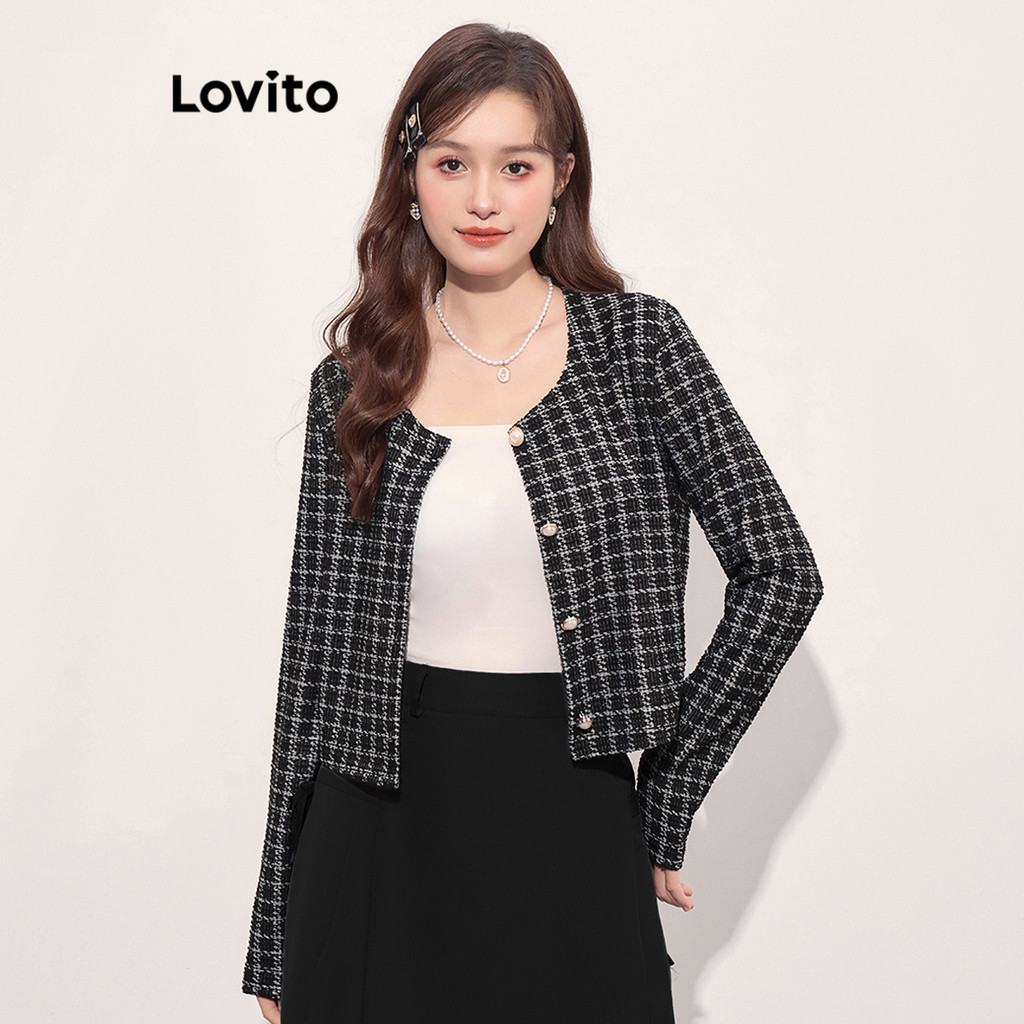 Lovito Casaco Casual Feminino Xadrez Com Botões Outono/inverno L114AD446