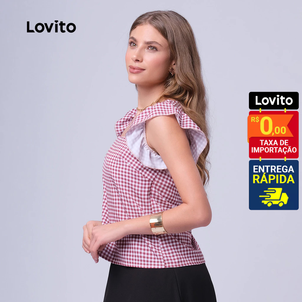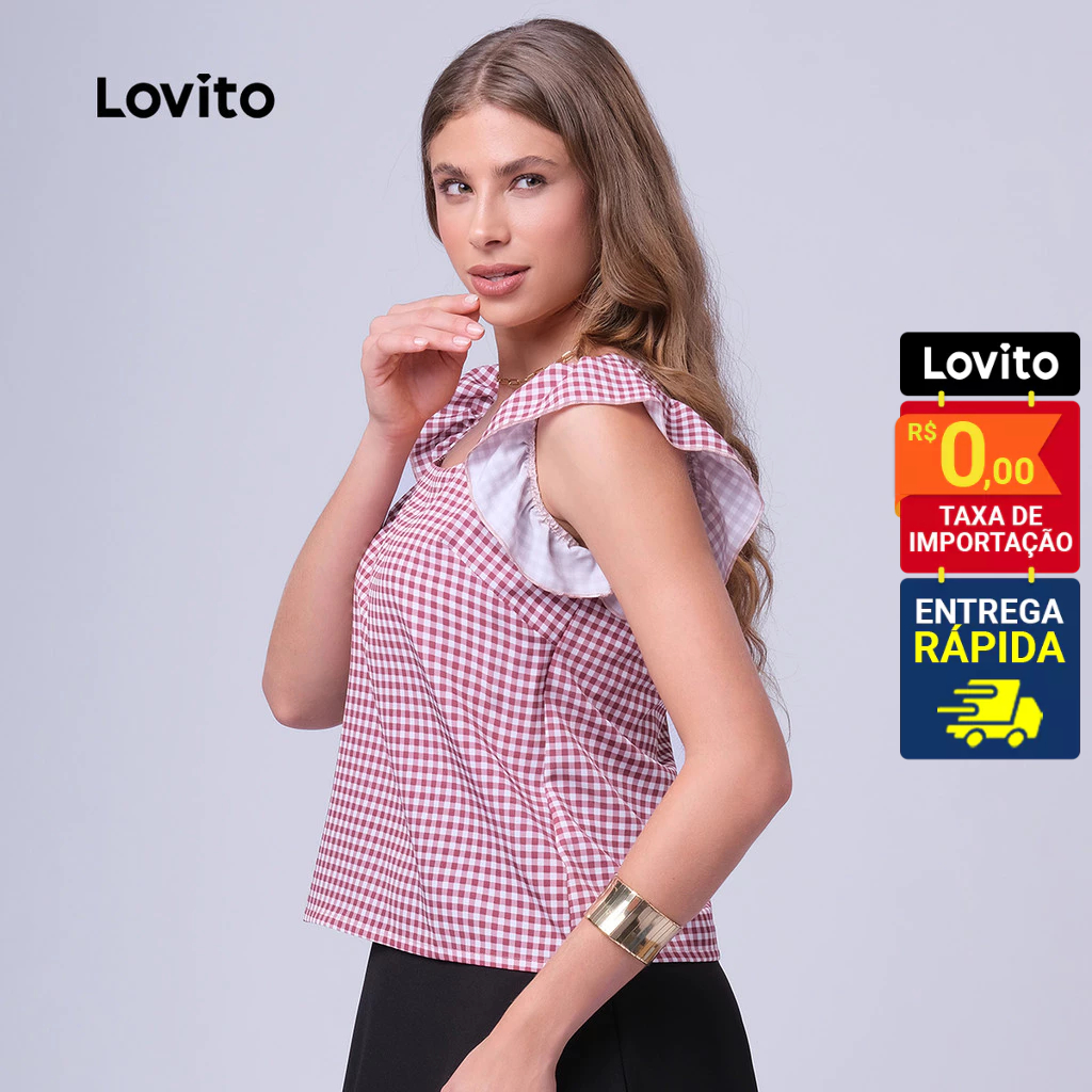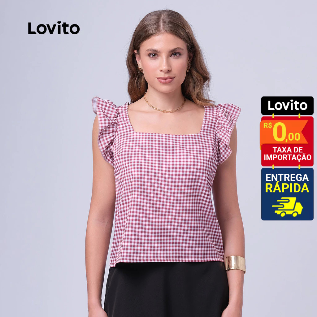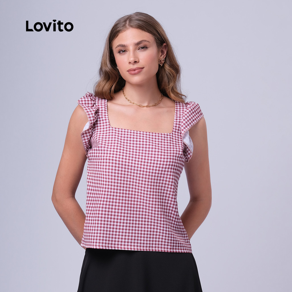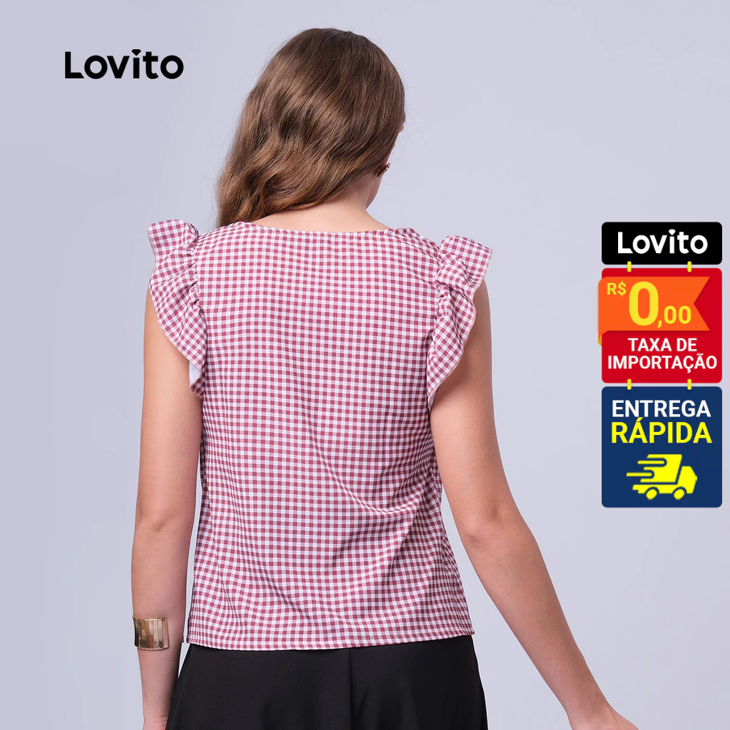 Lovito Regata Feminina Casual Estampa Xadrez LB394BRL423