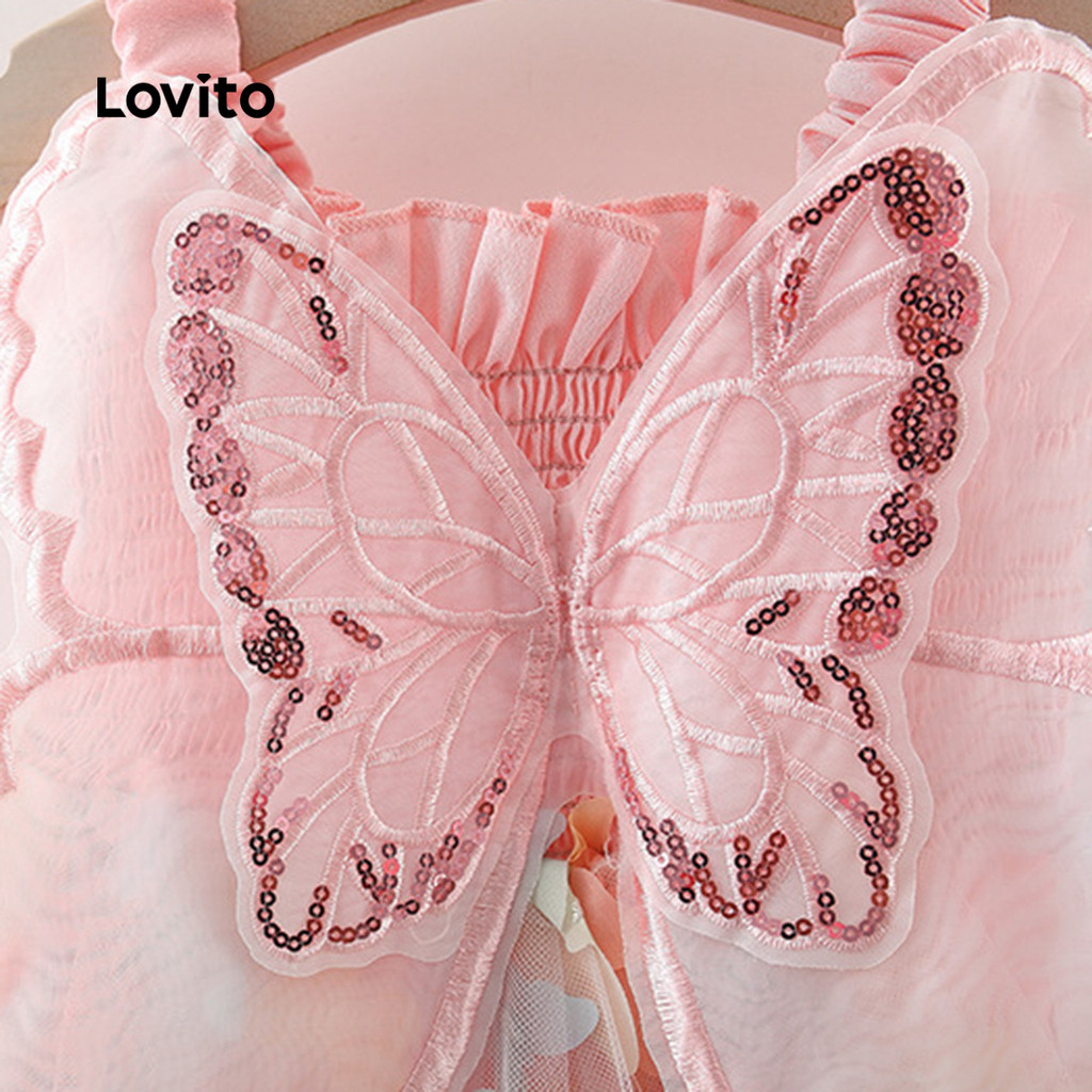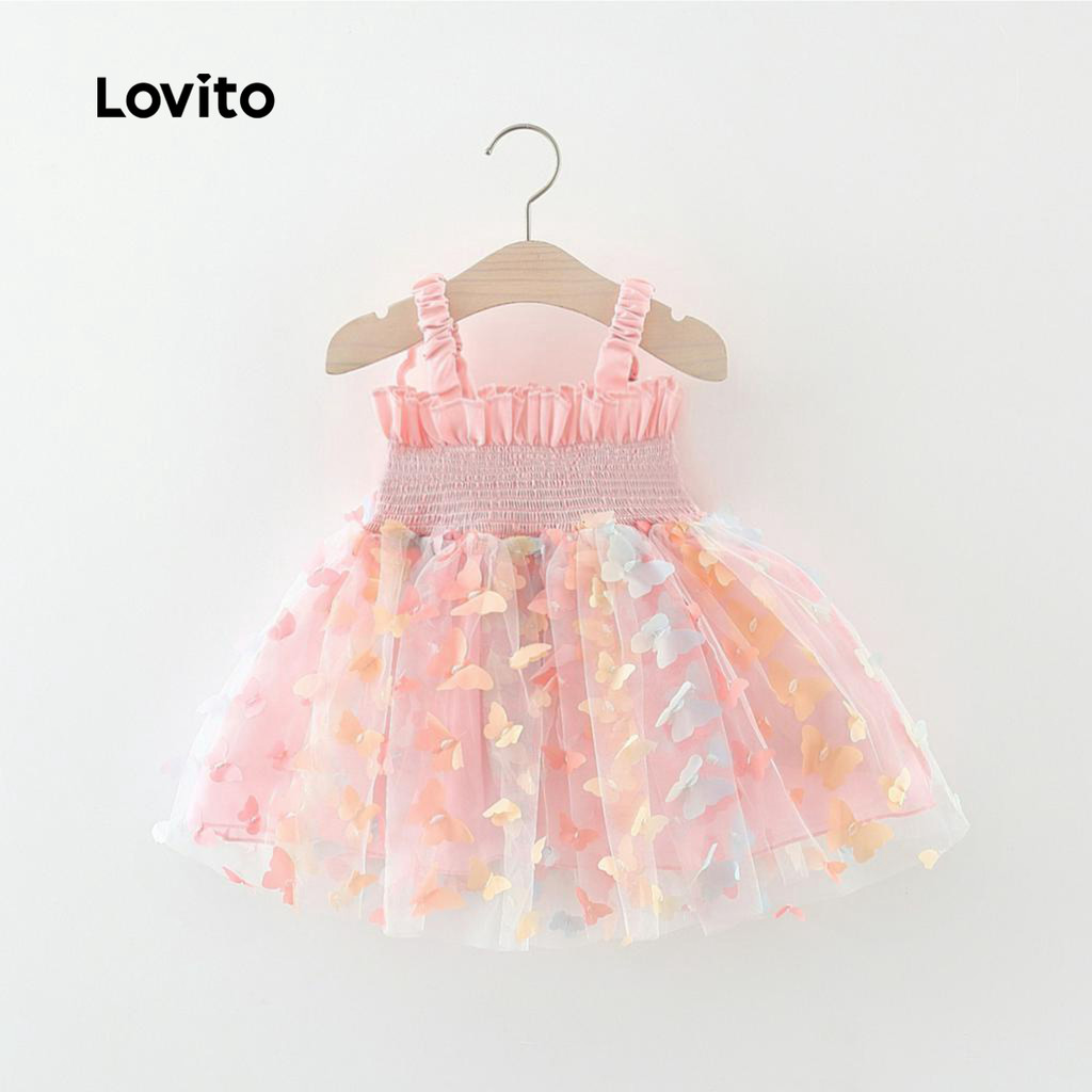 Lovito Lindo Vestido Rosa Com Laço Borboleta Para Bebê LCS099015