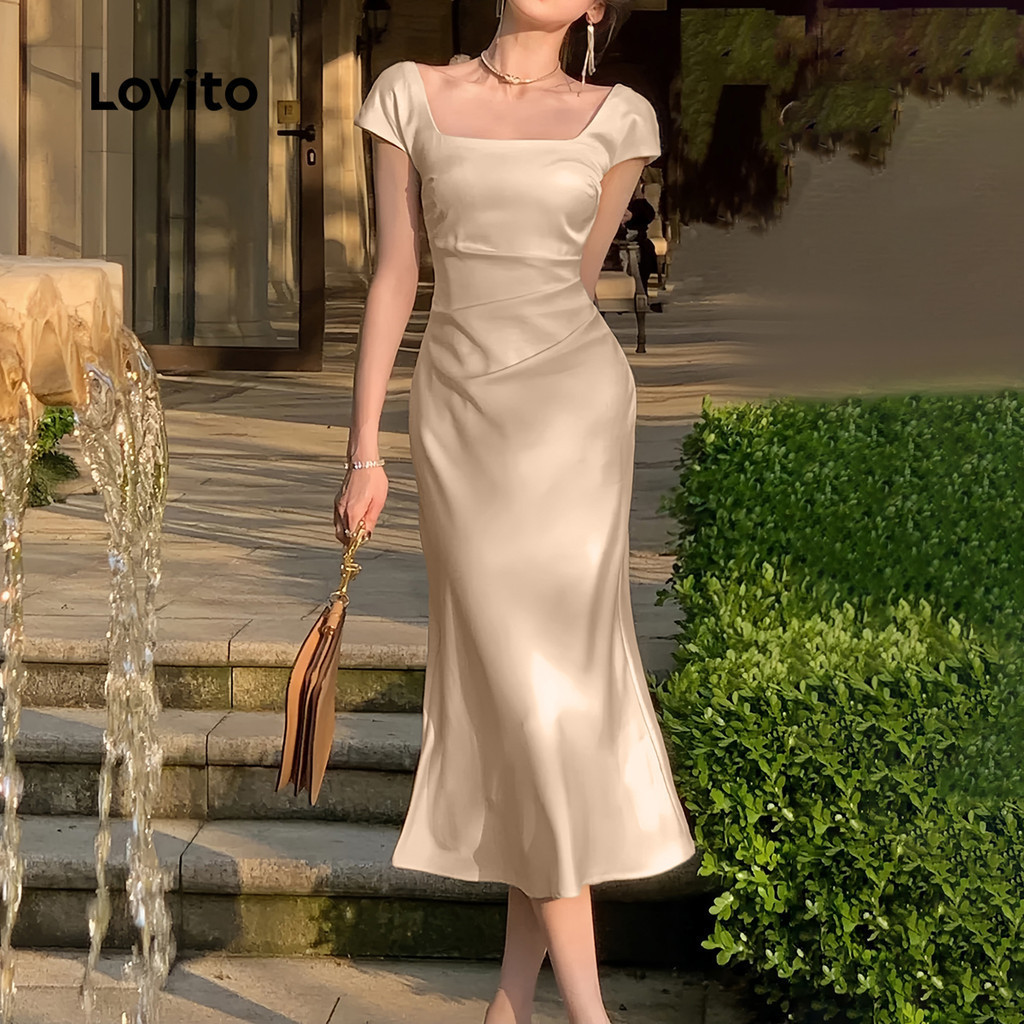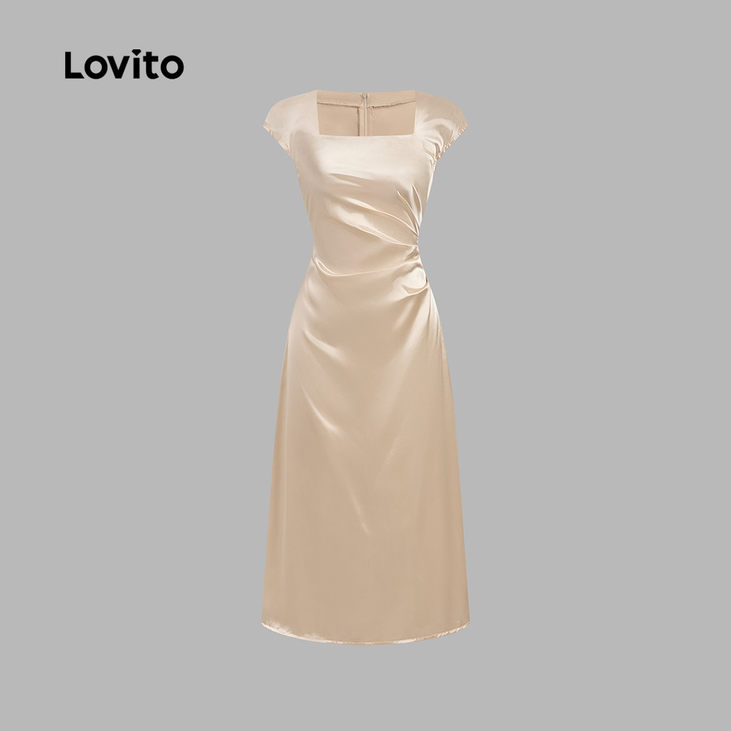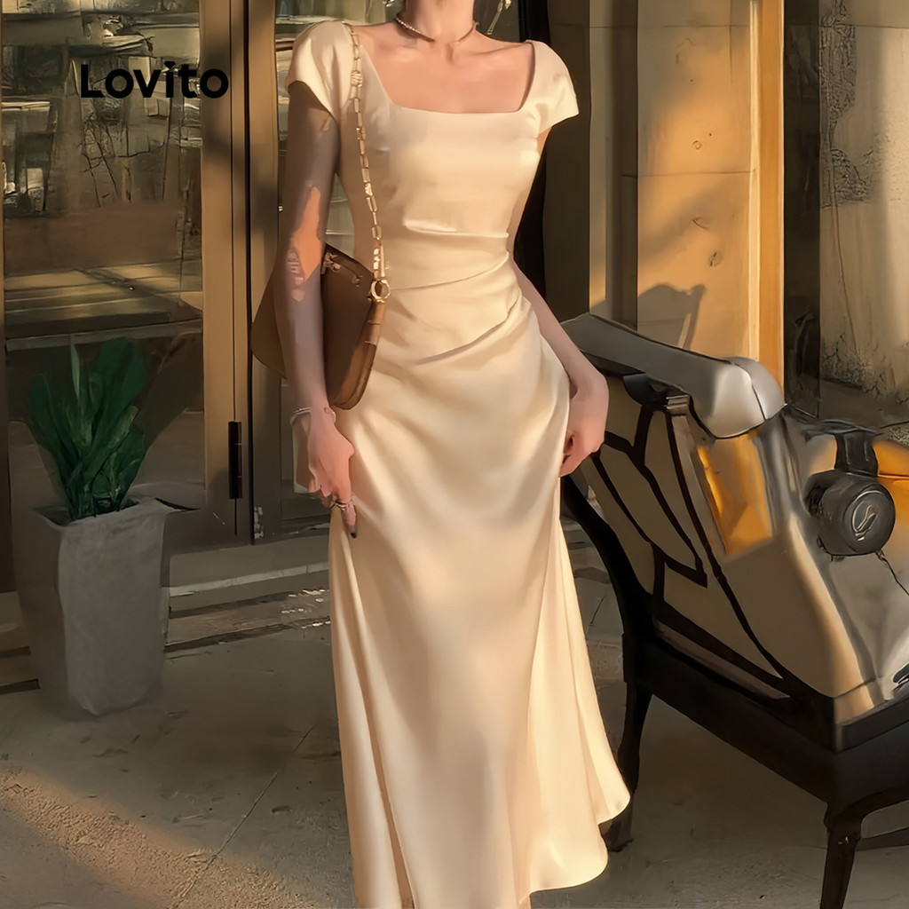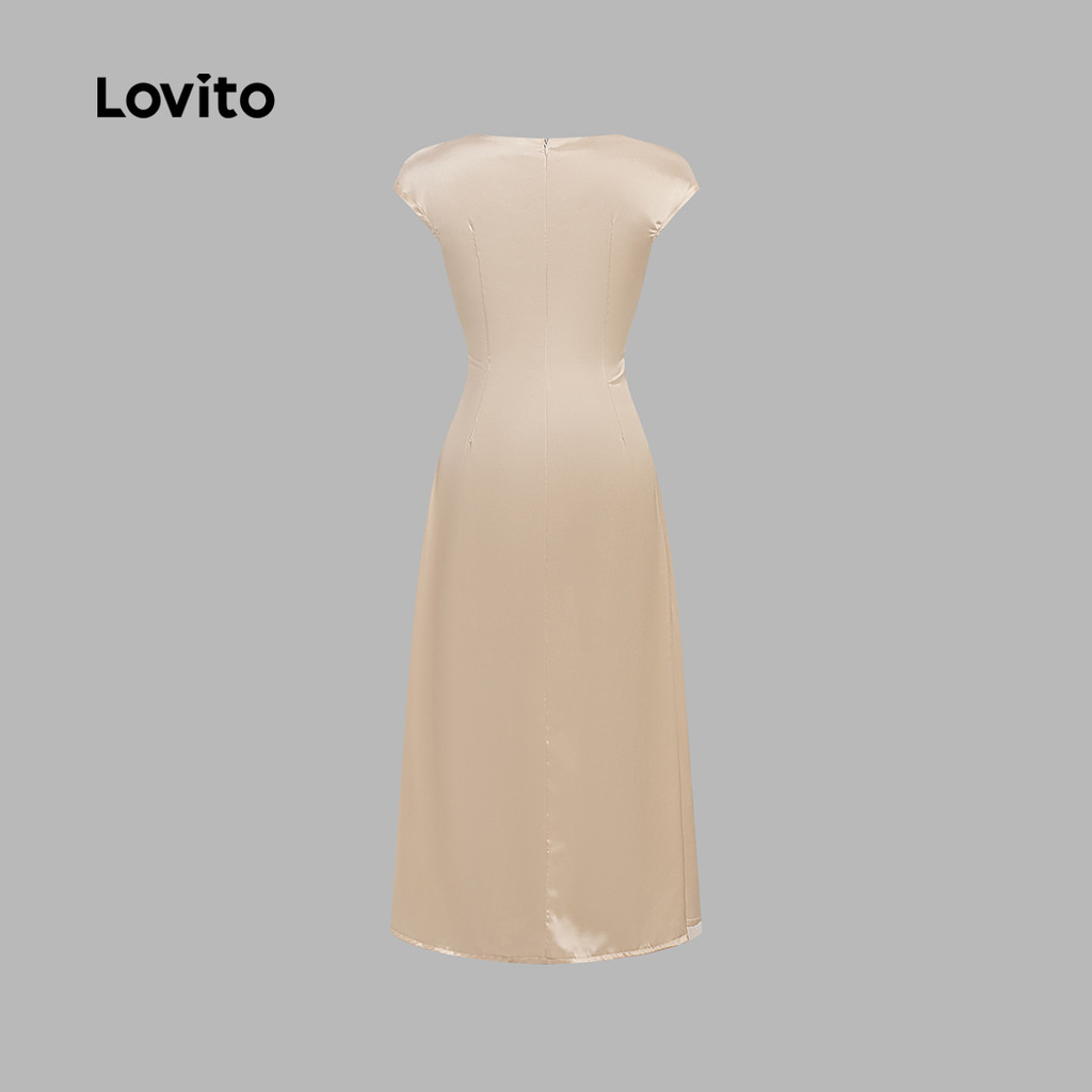 Lovito Vestido Elegante De Cetim Glamouroso Primavera/verão Champanhe Para Mulheres L137LD367